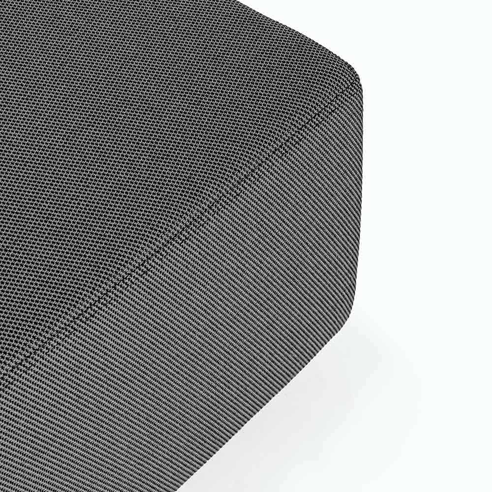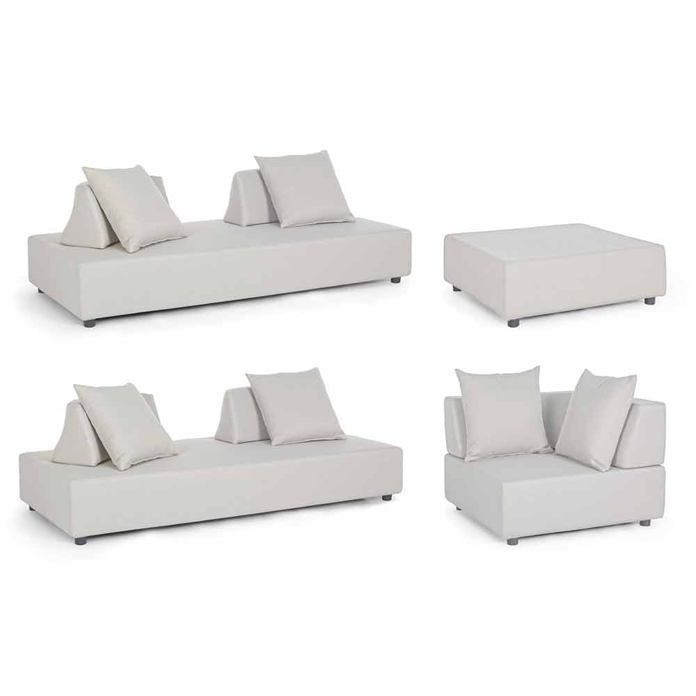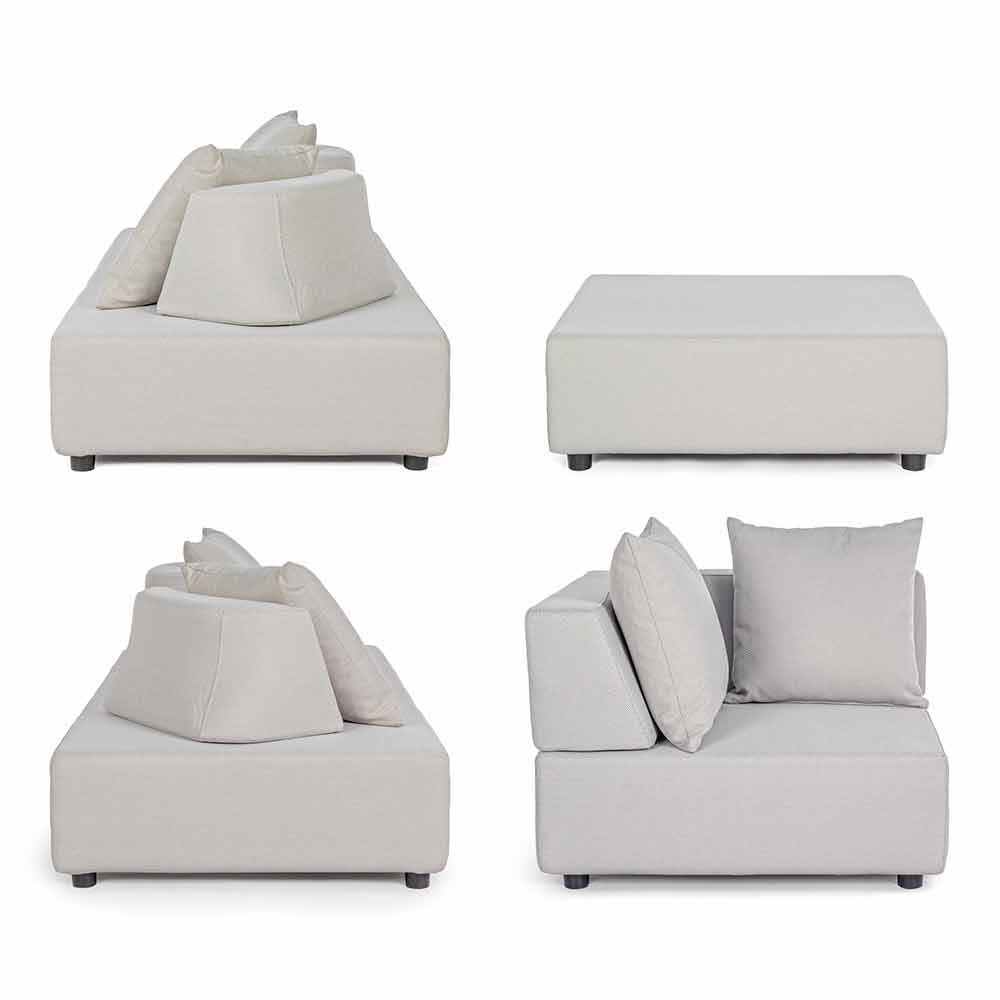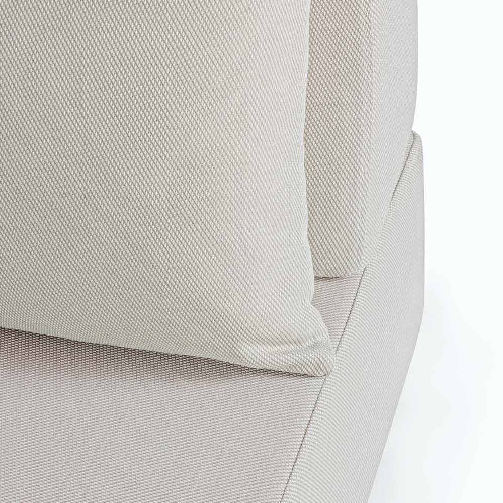 Sæder, rygge og puder med aftageligt betræk i olefint stof til udendørs brug (100% polypropylen, 285 g / m2), vandafvisende og modstandsdygtig over for UV-stråler (klasse 7), internt vandtæt med stof (polyurethan) belægning. Polstret sæde af polyurethanskum (38 kg / m3), ryglæn (20 kg / m3).