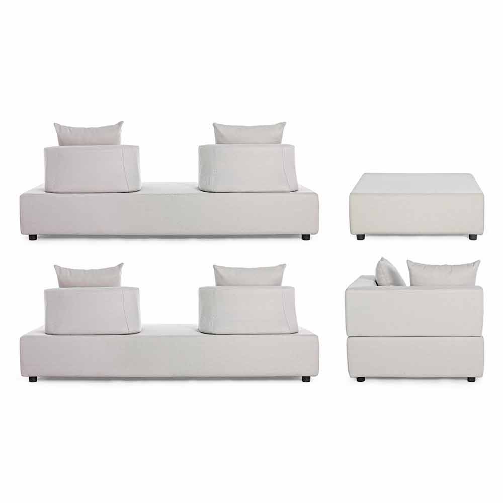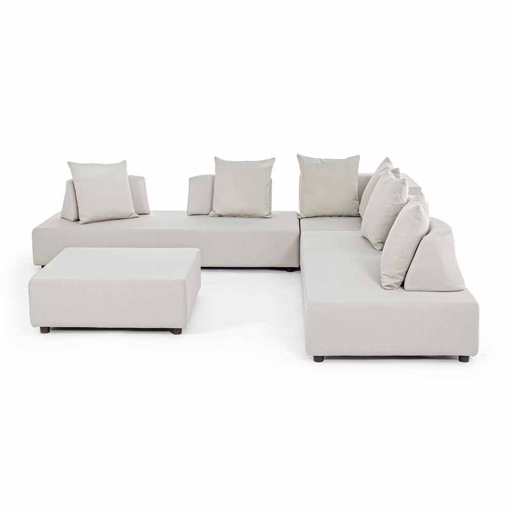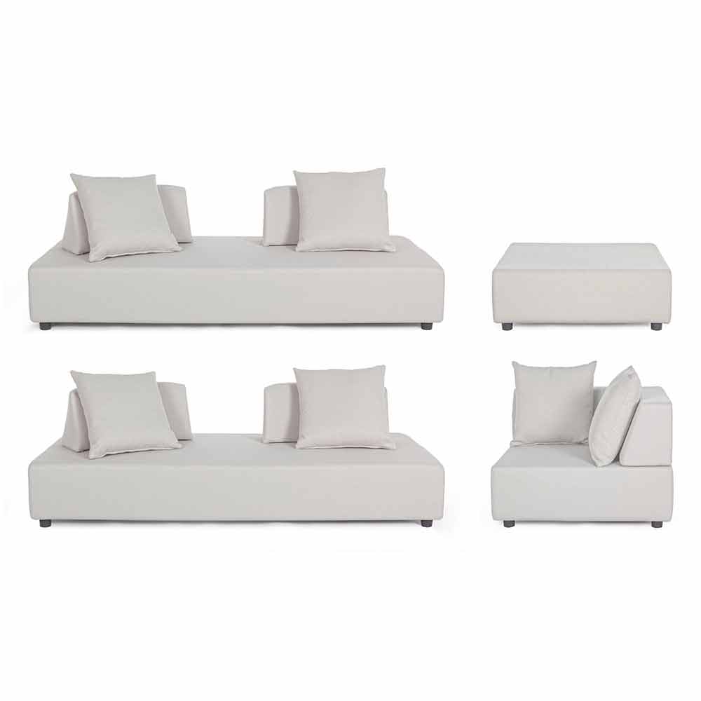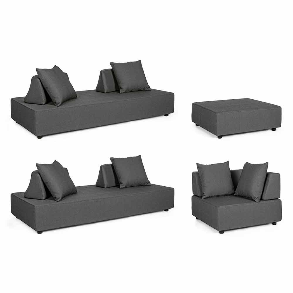 Sæder, rygge og puder med aftageligt betræk i olefint stof til udendørs brug (100% polypropylen, 285 g / m2), vandafvisende og modstandsdygtig over for UV-stråler (klasse 7), internt vandtæt med stof (polyurethan) belægning. Polstret sæde af polyurethanskum (38 kg / m3), ryglæn (20 kg / m3).