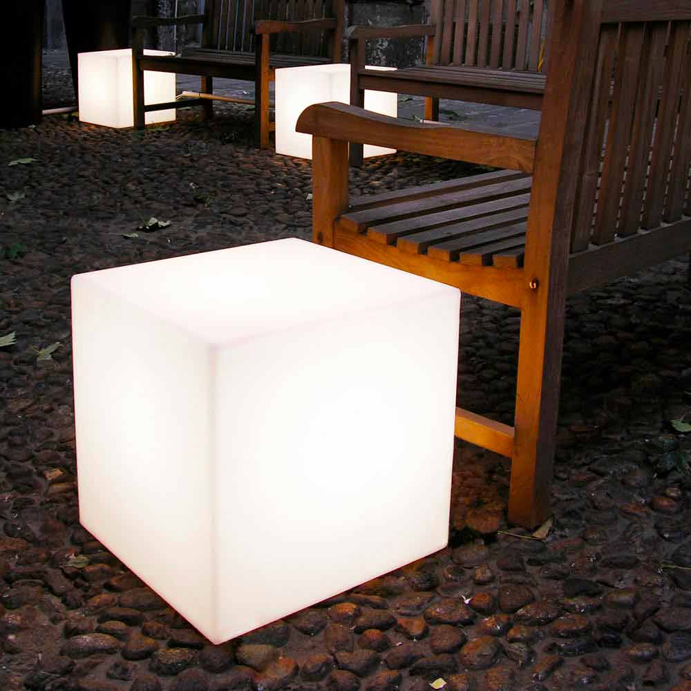 Cubo er en terningformet lampe til udendørs miljøer, perfekt til at oplyse haver og terrasser eller til brug ved elegante fester og events. Fra det umiskendelige lavet i Italien design giver det en delikat og blød belysning, der gør atmosfæren elegant og moderne.