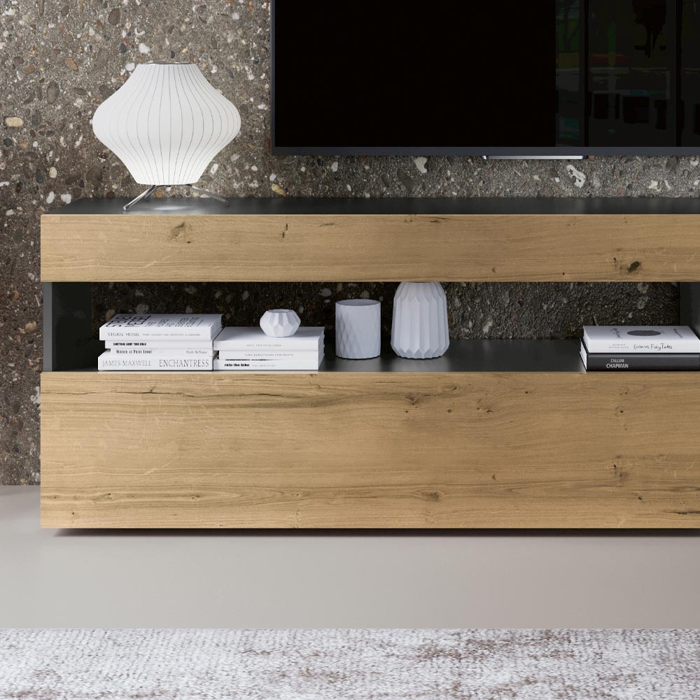 - vægmøbel med egetræsskuffe, NORDIC KNOTTED EG + CHARCOAL finish, MDF-skal, skuffer i knudet eg-blokplade