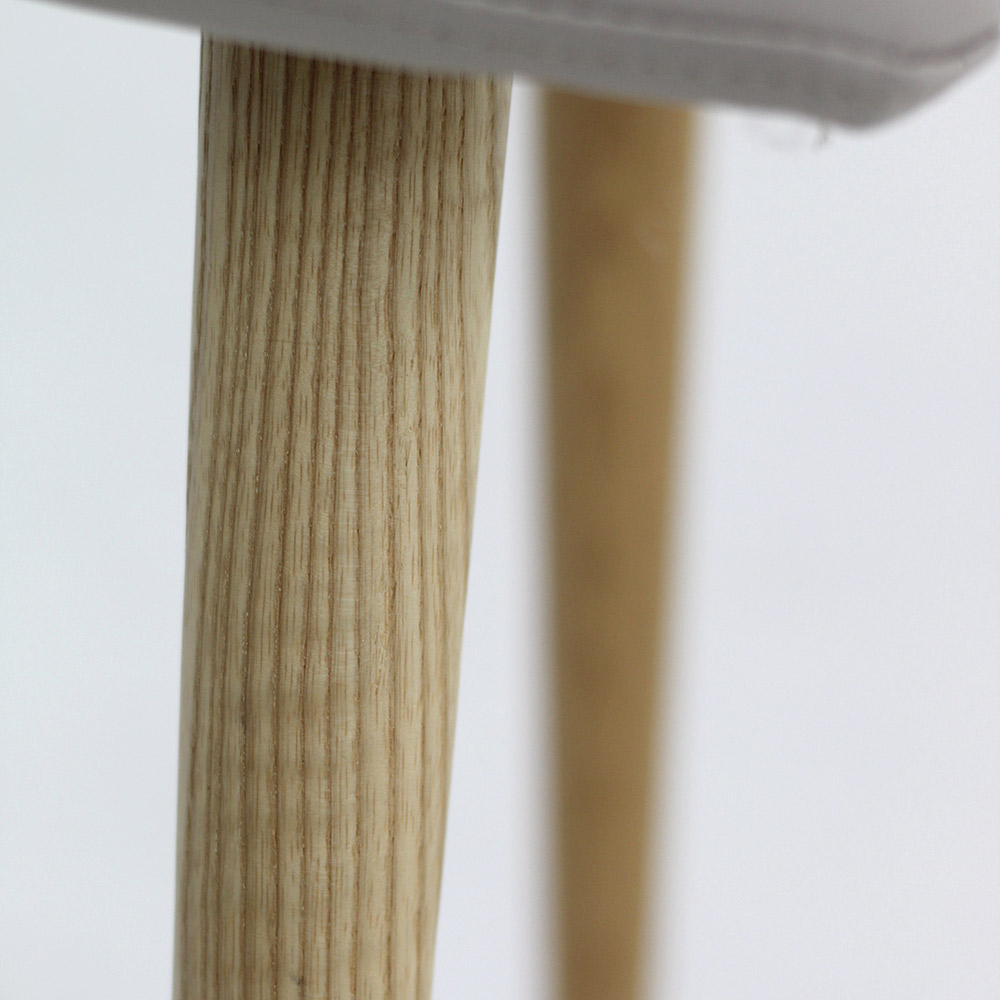 Sæde med øko-læderbetræk, fås i farverne: hvid, sandbeige, titangrå RAL 7046.