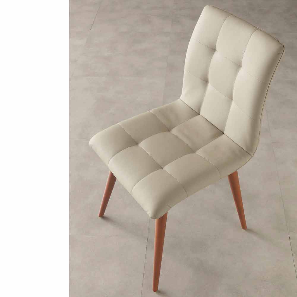 Moderne designstol Viola med polstring af økologisk læder og ben i træ.