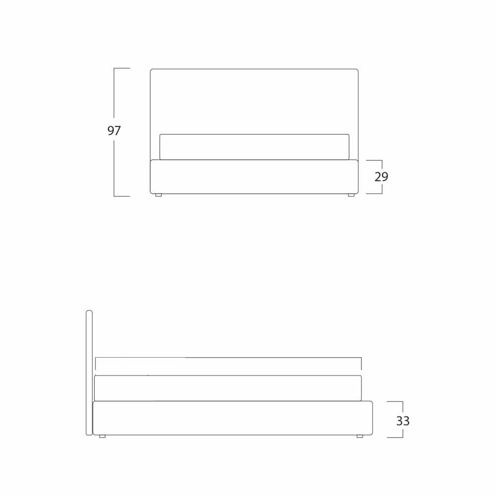 Den er fuldstændig aftagelig. Strukturen er i grantræ med en naturlig indvendig finish h.29, beklædt med polyurethanskum uden chlorfluorcarboner i henhold til UNI-standarder og foret med lysstabil velfodera. Sengen leveres med lamelbund med metalstruktur, buet stel med 50x37 mm profil malet med epoxypulver. Normal ortopædisk lamelbund, 15 lameller i buet bøgekrydsfiner 68x8 mm pr.