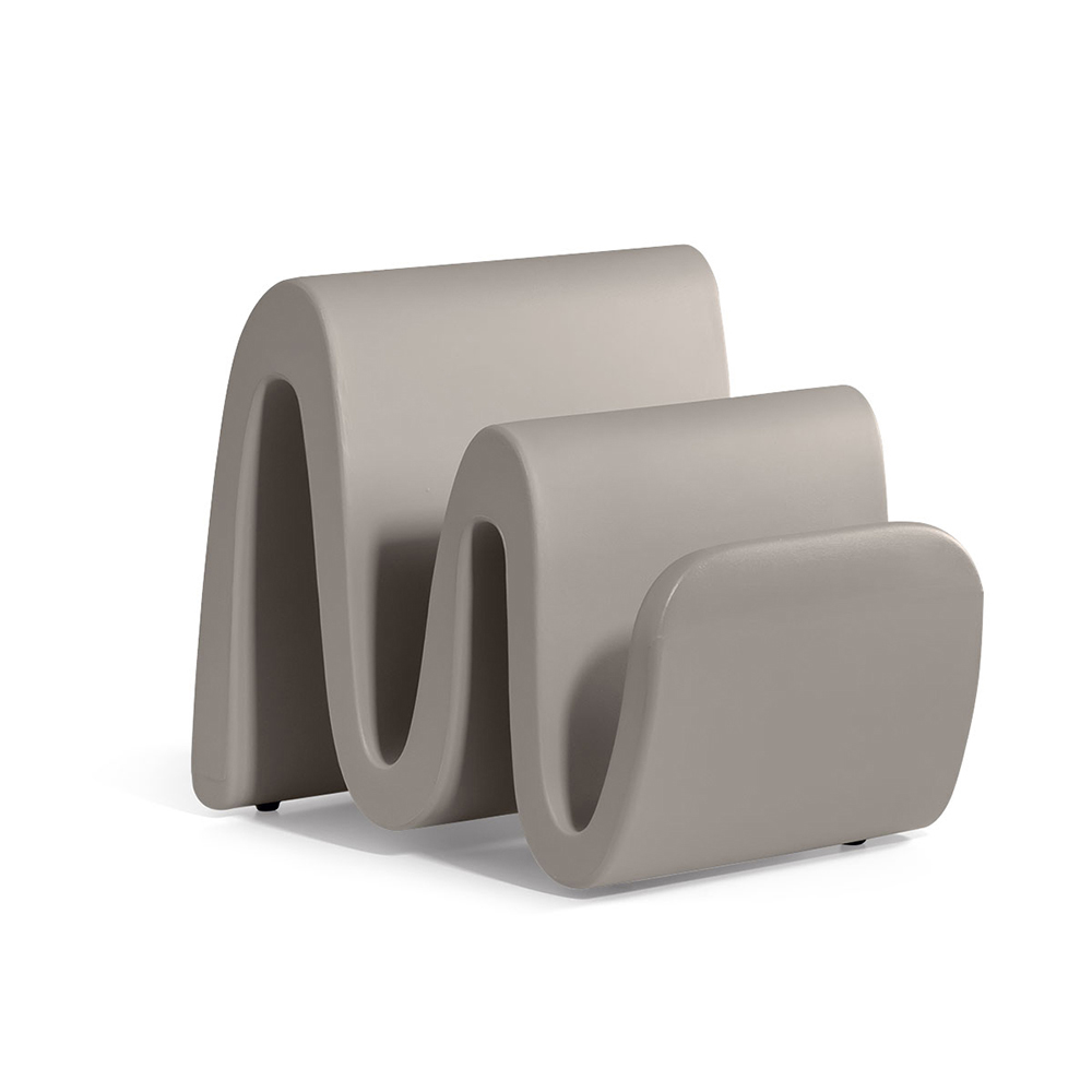 Denne magasinreol, der udelukkende er fremstillet i Italien i farvet polyethylen, er kendetegnet ved et raffineret design og en særlig form, der minder om en lille bølge. Dette magasinhylde er ekstremt funktionelt og er et indretningstilbehør, der passer til ethvert miljø og indendørs rum, der er i stand til at fange opmærksomhed på grund af dets minimale, men moderne og fængslende stil.