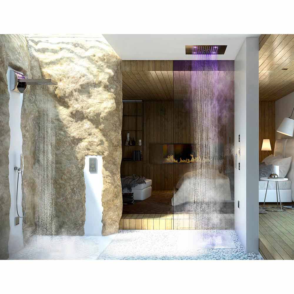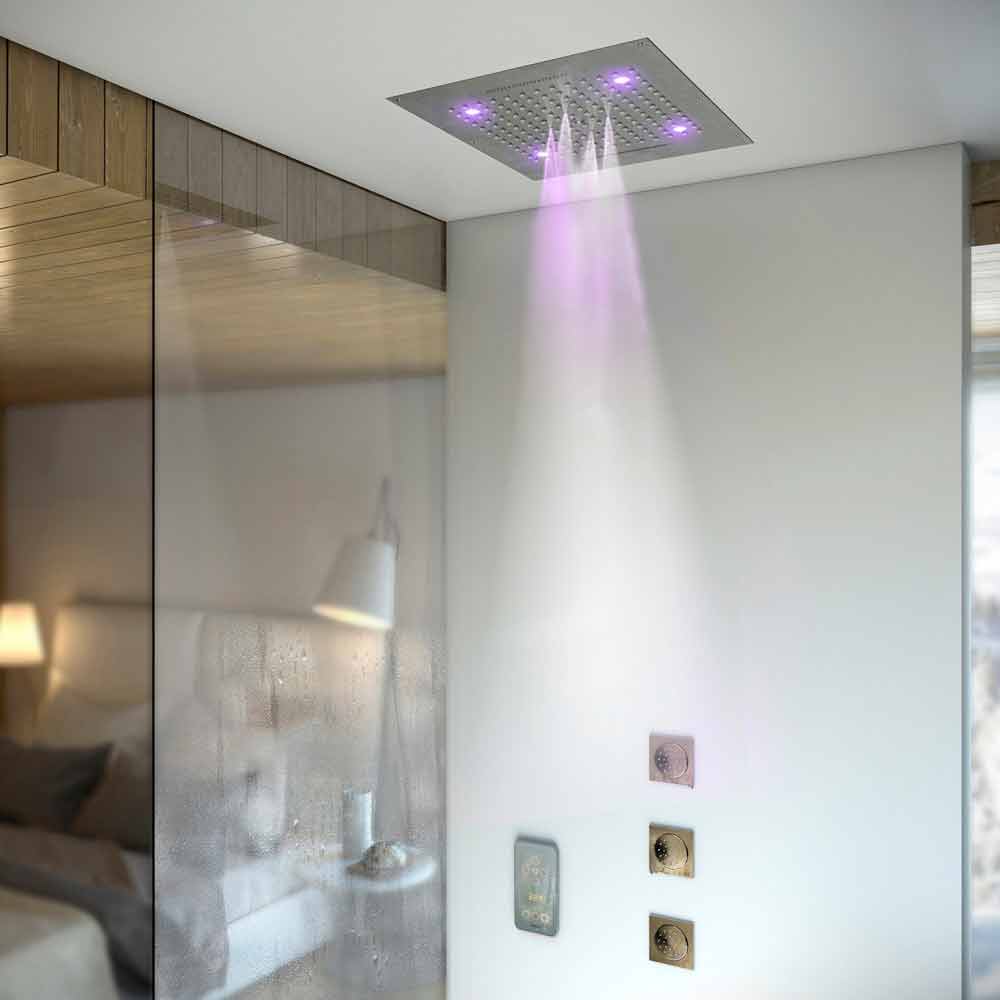 - Shower Drøm / 4 fire funktioner (regn, vandfald, kaskade kam, spray) med RGB LED lys