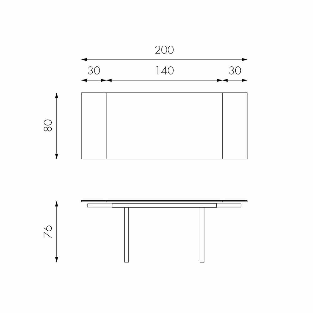 Nardo er et udtrækkeligt bord op til 200 cm med målene: l.140 / 200 x d.80 x h.76 cm.