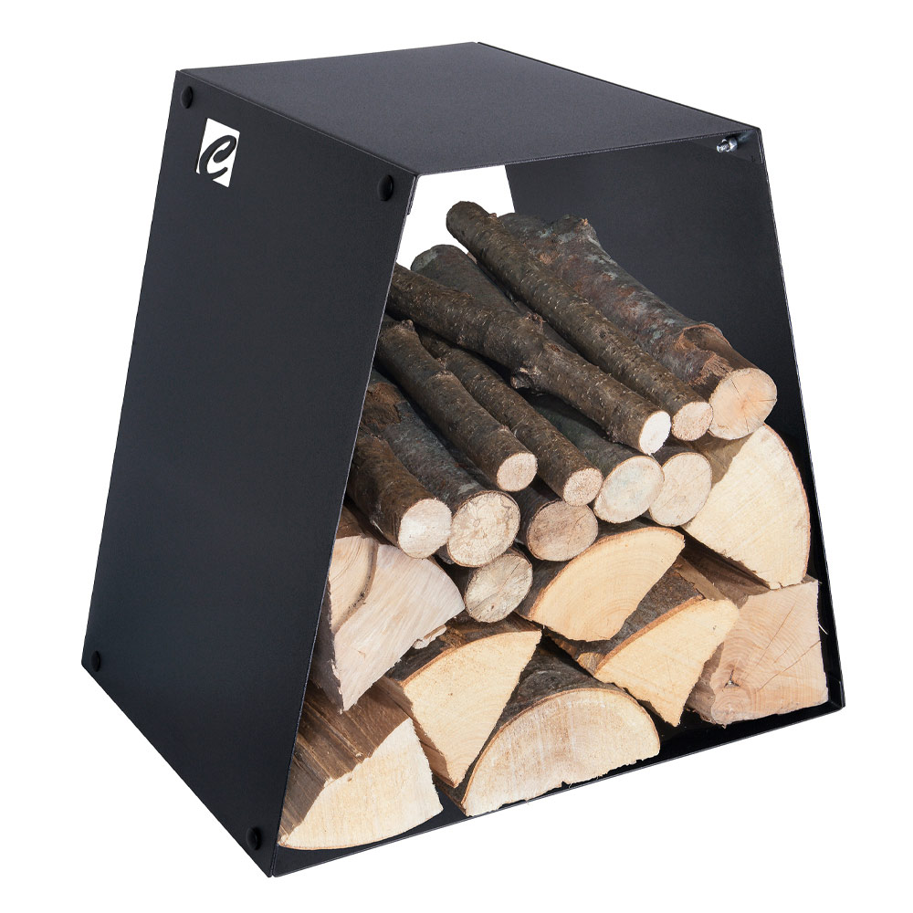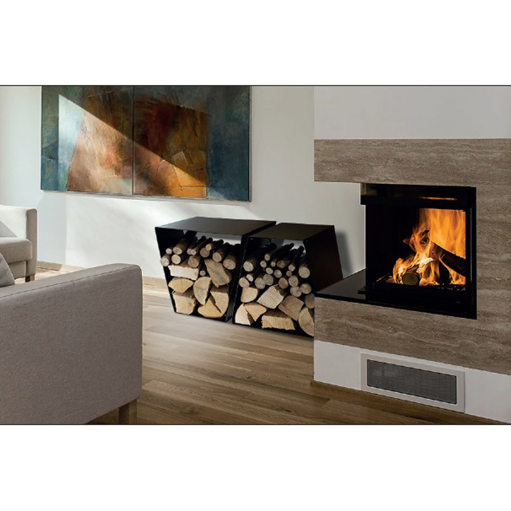 Brændeholder i sort eller farvet malet stål, fremstillet i Italien.
