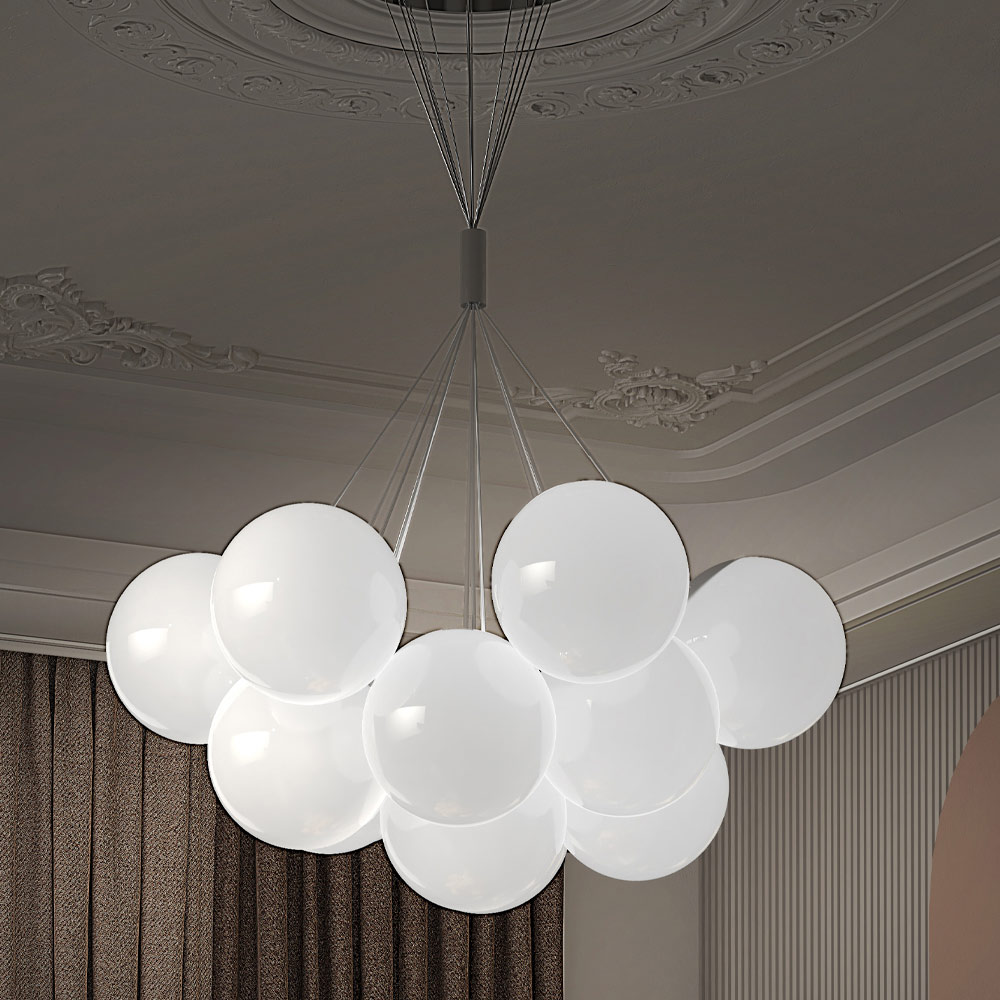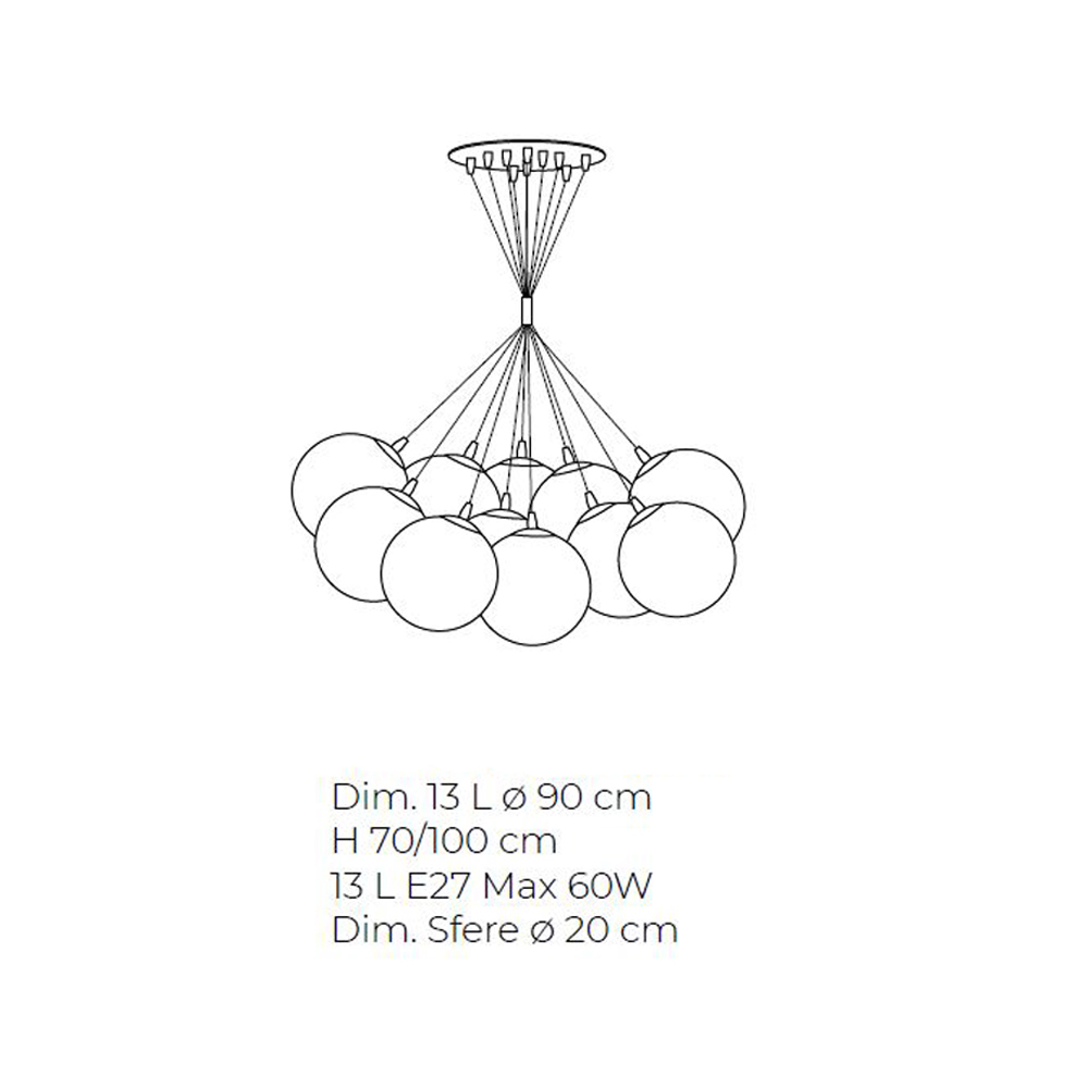 af håndblæst glas, der er ideelt til at fylde og belyse store rum som opholdsrum eller spisestuer takket være en