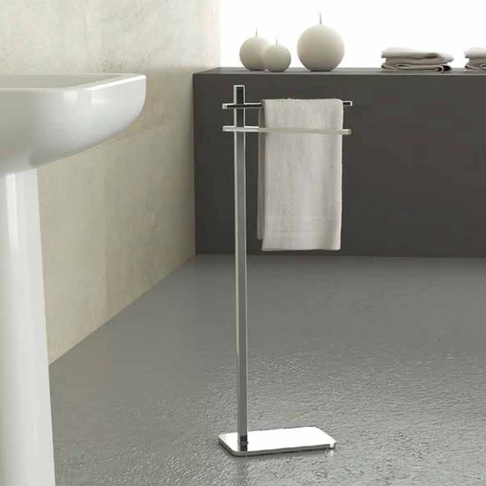 Gulvlampe til håndklæder fremstillet i Italien med 2-armet forkromet jernstruktur . Karakteriseret ved bløde og afrundede linjer , hvad der gør dette møbleringstilbehør med en raffineret smag unik, er den umiskendelige enkelhed, der understreger dens elegance og stærke personlighed .