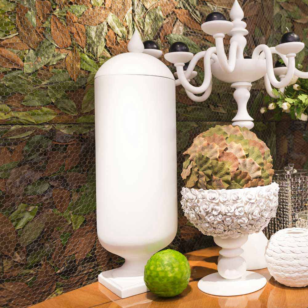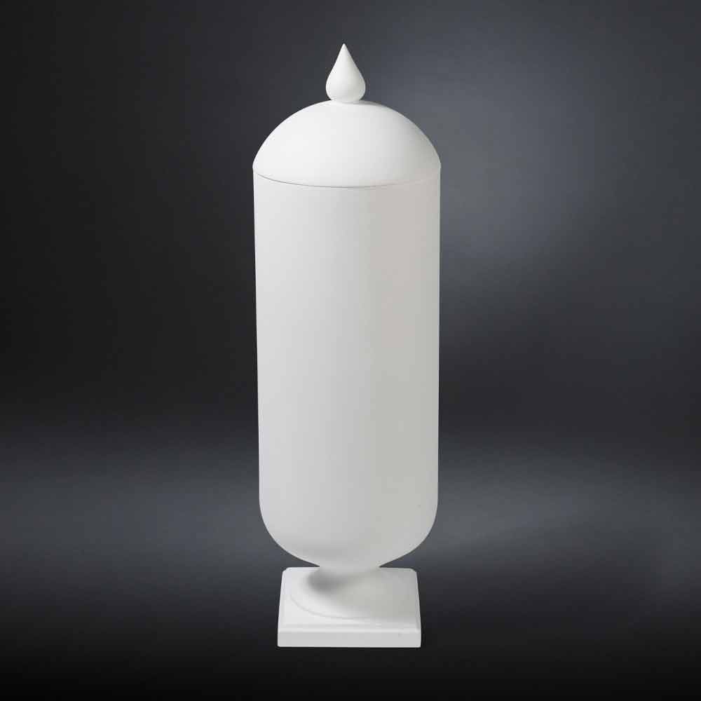 Moderne vase til interiør i uigennemsigtig hvid keramik håndlavet gennem en 100% Made in Italy produktion . Et design præget af forskellige og enkle geometriske former, der giver liv til et unikt supplement præget af en raffineret minimalisme, der er ideel til dem, der elsker at møblere på en væsentlig måde, men med personlighed og karakter . Håndværket understreger dets værdi og er præget af præcision, lidenskab og kærlighed til tradition. Resultatet er en idé om eksklusive møbler, der er ideelle til de mest varierede miljøer, lige fra boligindretning til hoteller, restauranter, kontraktområder, kurbade, men også som ramme om begivenheder og bryllupper.