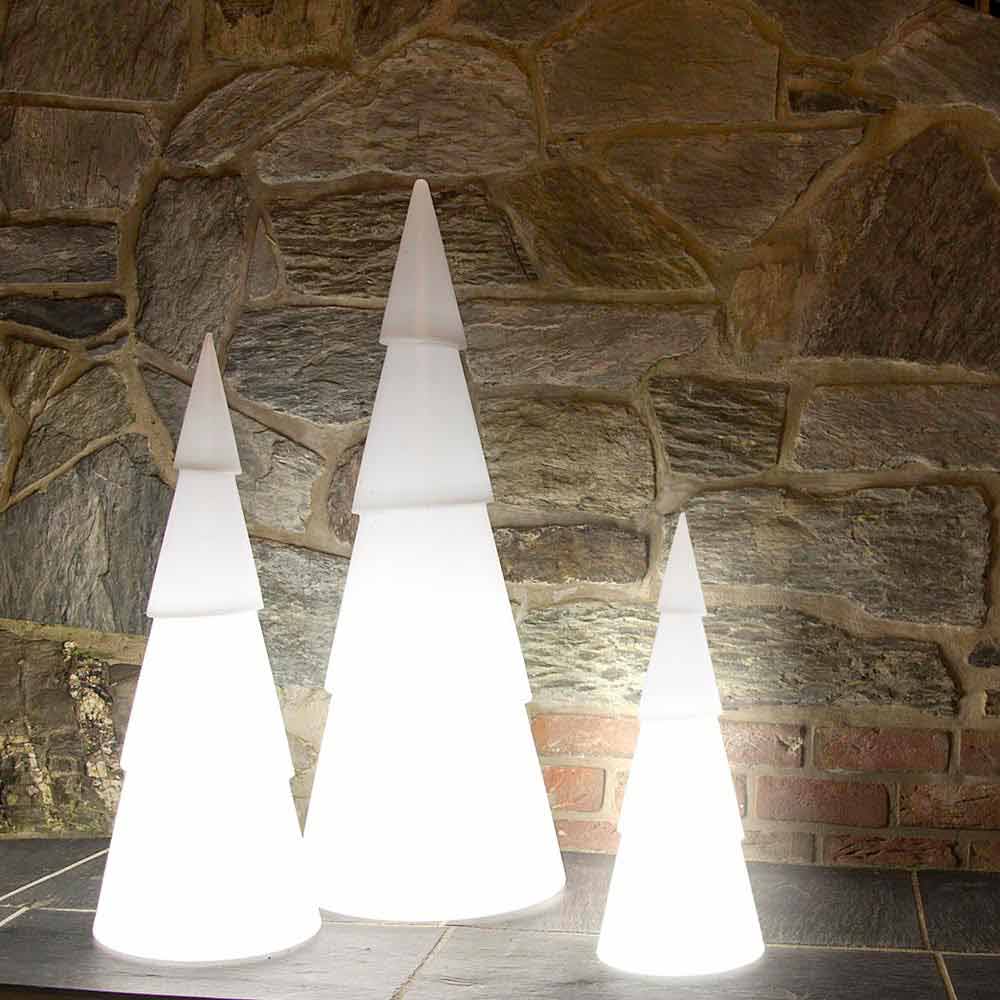 Kegleformet juletræs gulvlampe i 3 størrelser og 3 farver moderne design til indendørs eller udendørs.