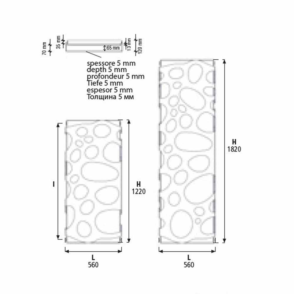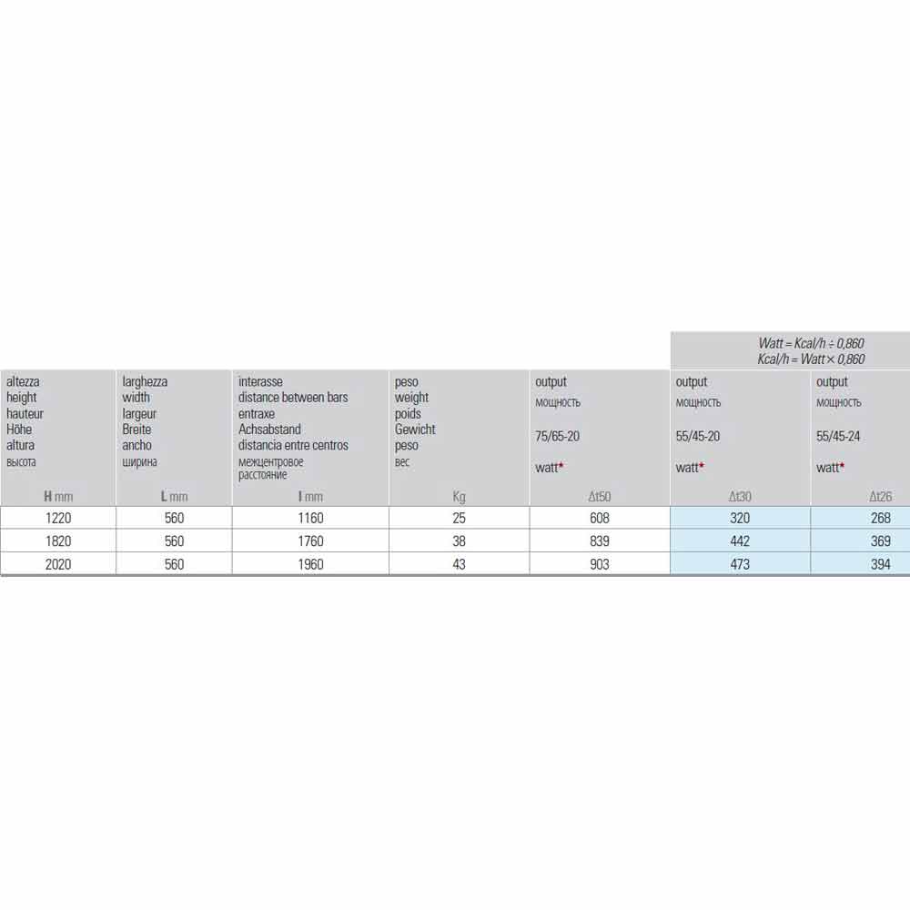 Fås i forskellige størrelser *:- H 1220 x L 560 x Inter. 1160 mm x Output w (Δt50 *) 608; Udbytte w (At30 *) 320; Udbytte w (At26 *) 268