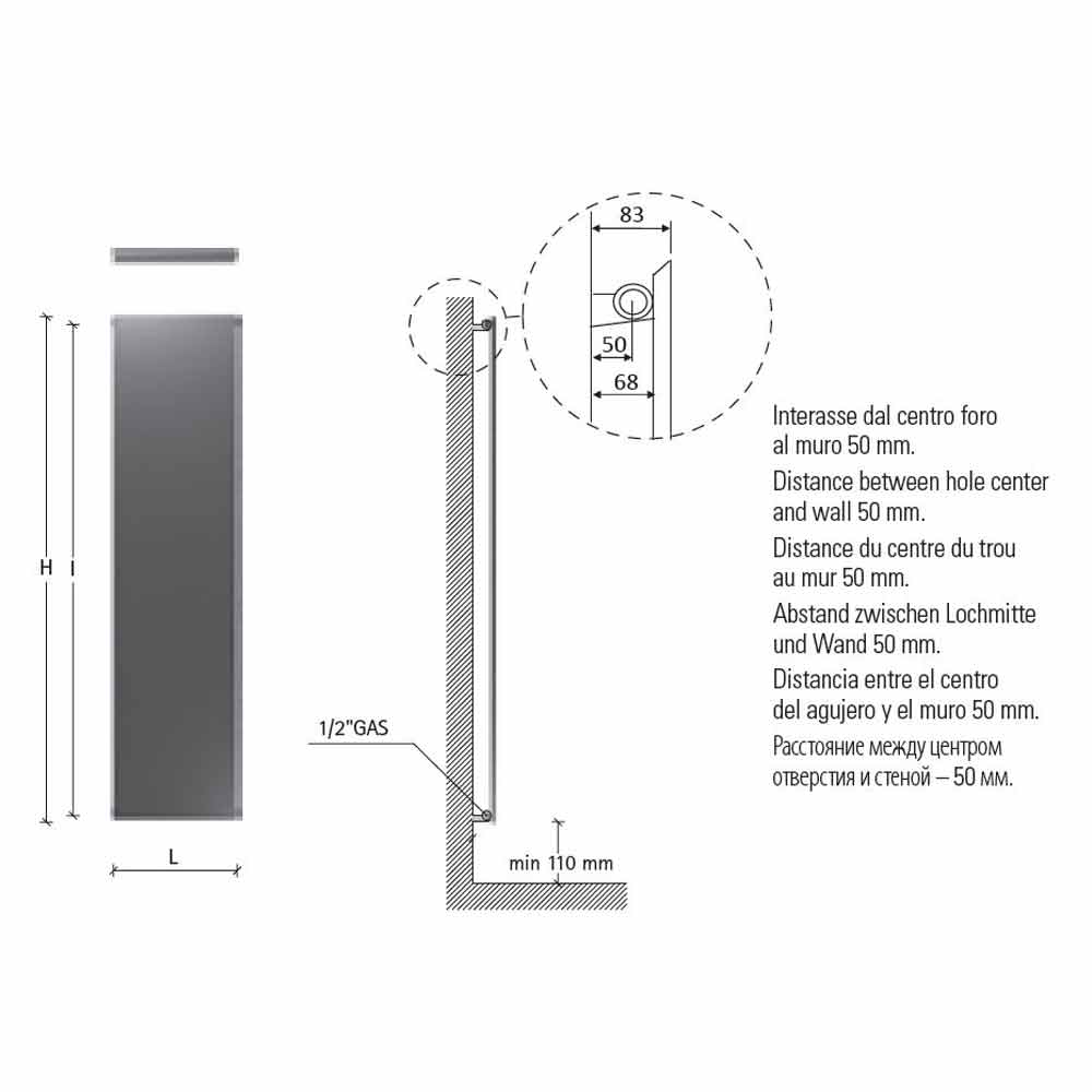 Design radiator i lodret stål væg installation, fremstillet i Italien.