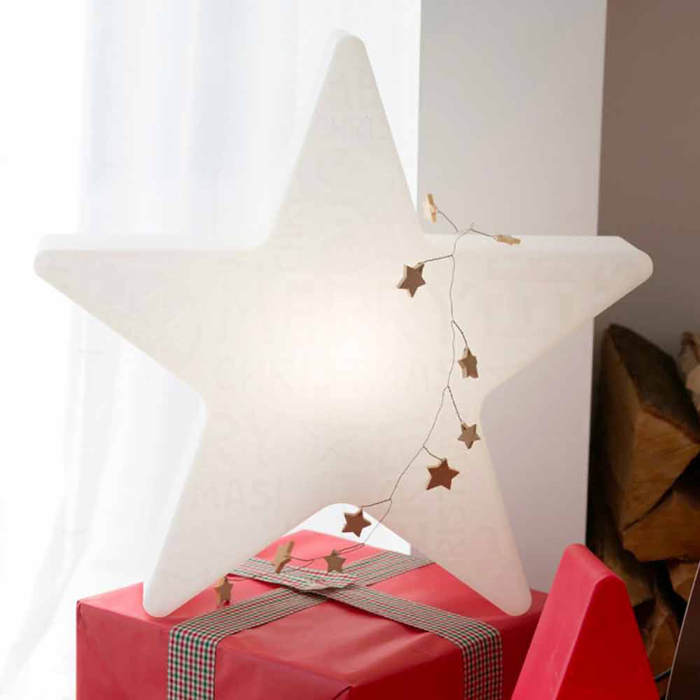 Denne bordlampe til indendørs eller udendørs er kendetegnet ved sit iøjnefaldende stjerneformede design med juletema-bogstaver i aflastning foran, mens bagsiden forbliver glat. Et dekorativt lyspunkt, der glæder sjælen og hjertet og skaber en mousserende og moderne atmosfære, ideel til julen .