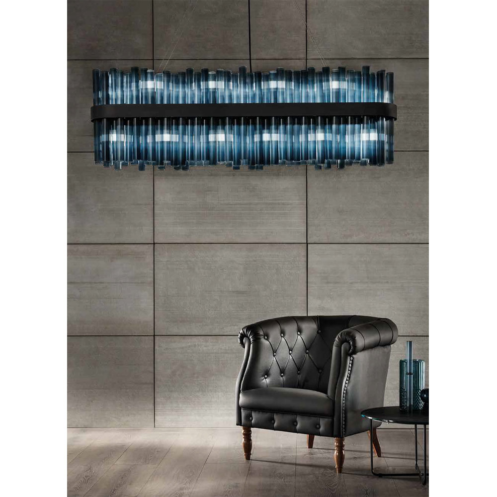 Lysekronen med et moderne og raffineret rektangulært design er et