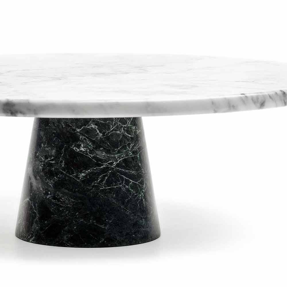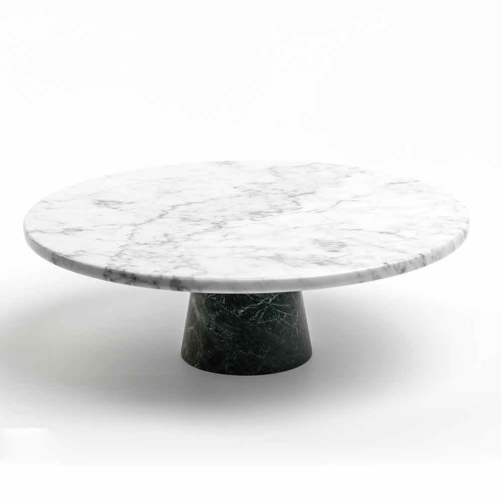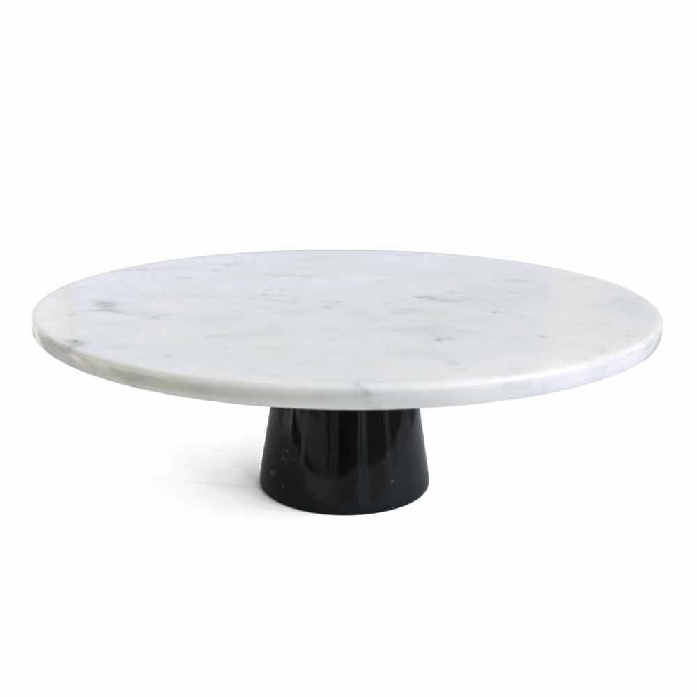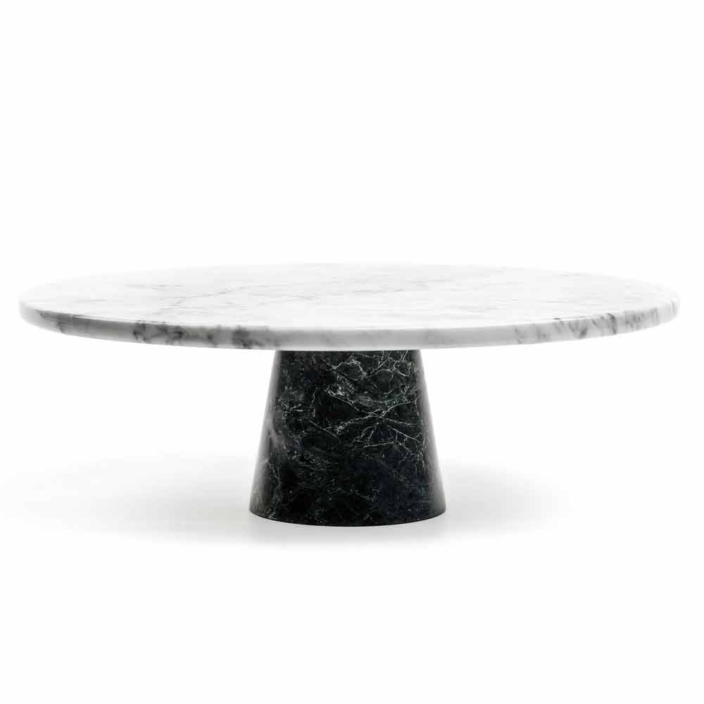 Elegant moderne kagestand med hvid Carrara marmor top og sort Marquinia marmor base. Lavet af fin marmor af høj kvalitet. Det er et unikt stykke, da hver brugt marmorblok adskiller sig fra de andre for vener og nuancer.