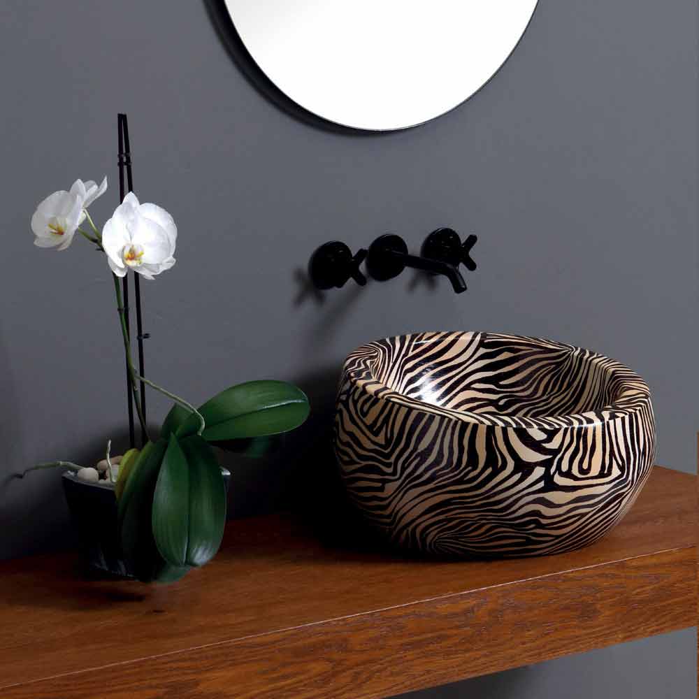 Cirkulært design keramisk bordplade håndvask fremstillet i Italien Elisa