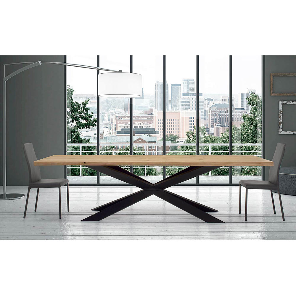 Moderne spisebord i fineret træ og sort stålfod håndlavet i Italien.