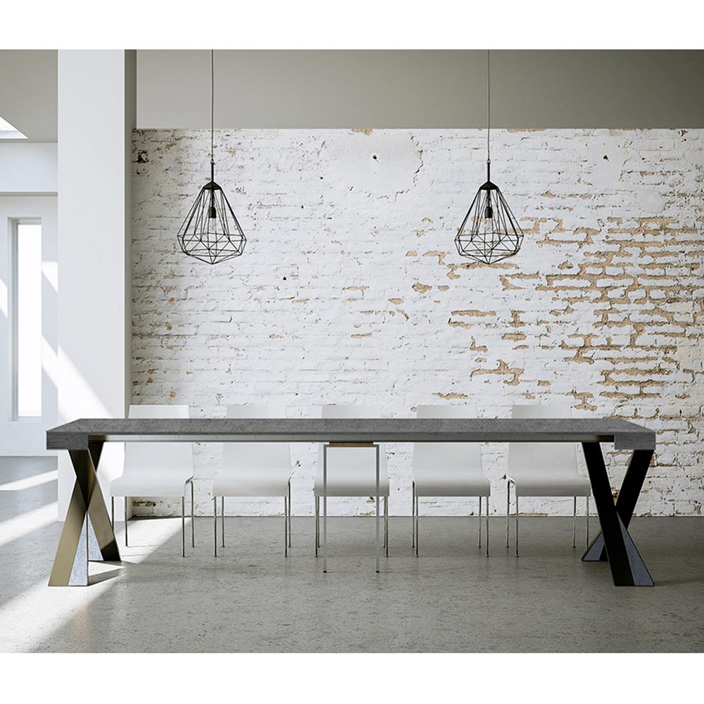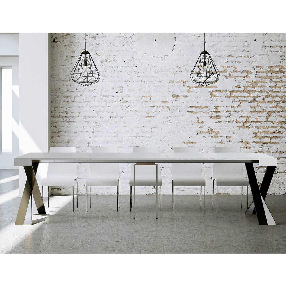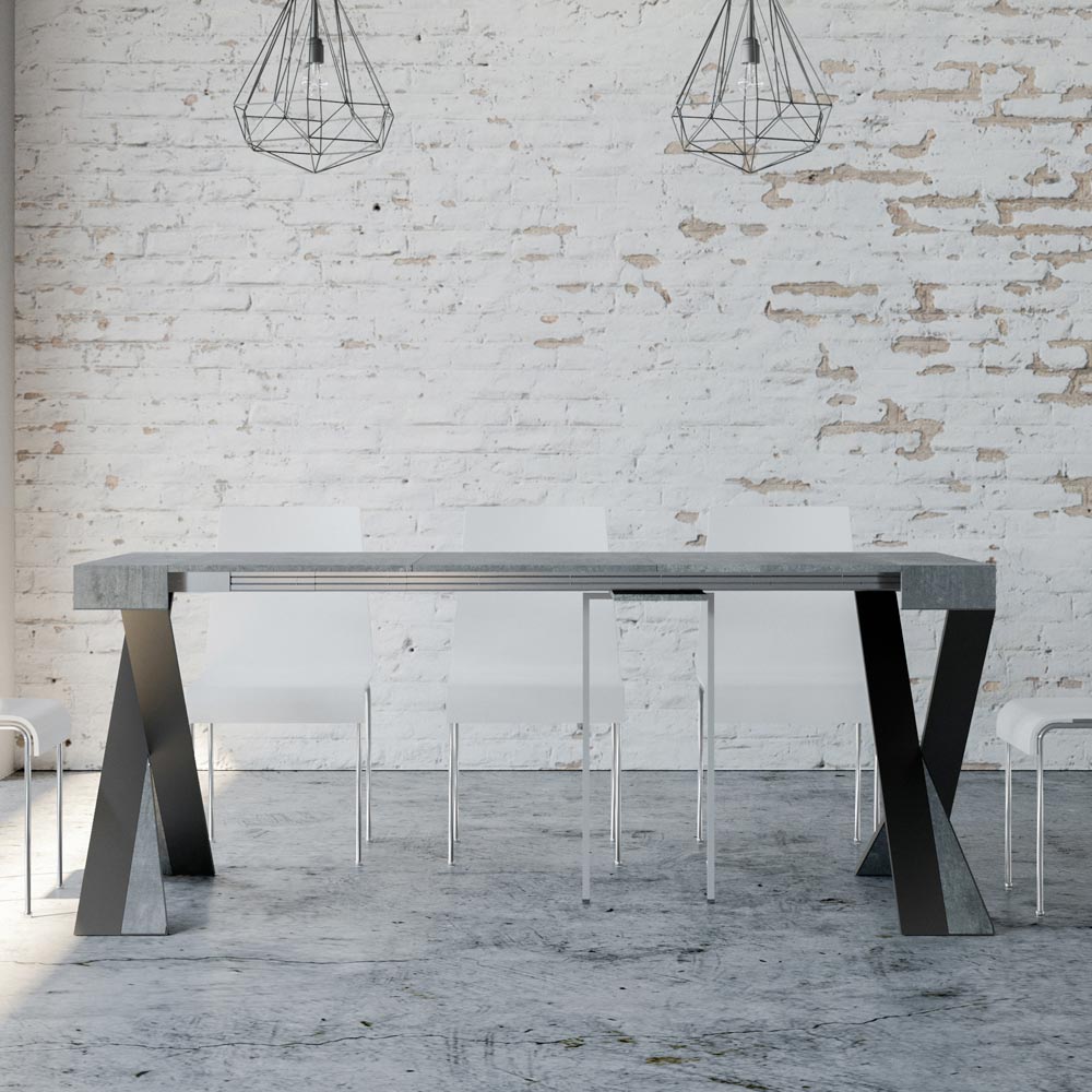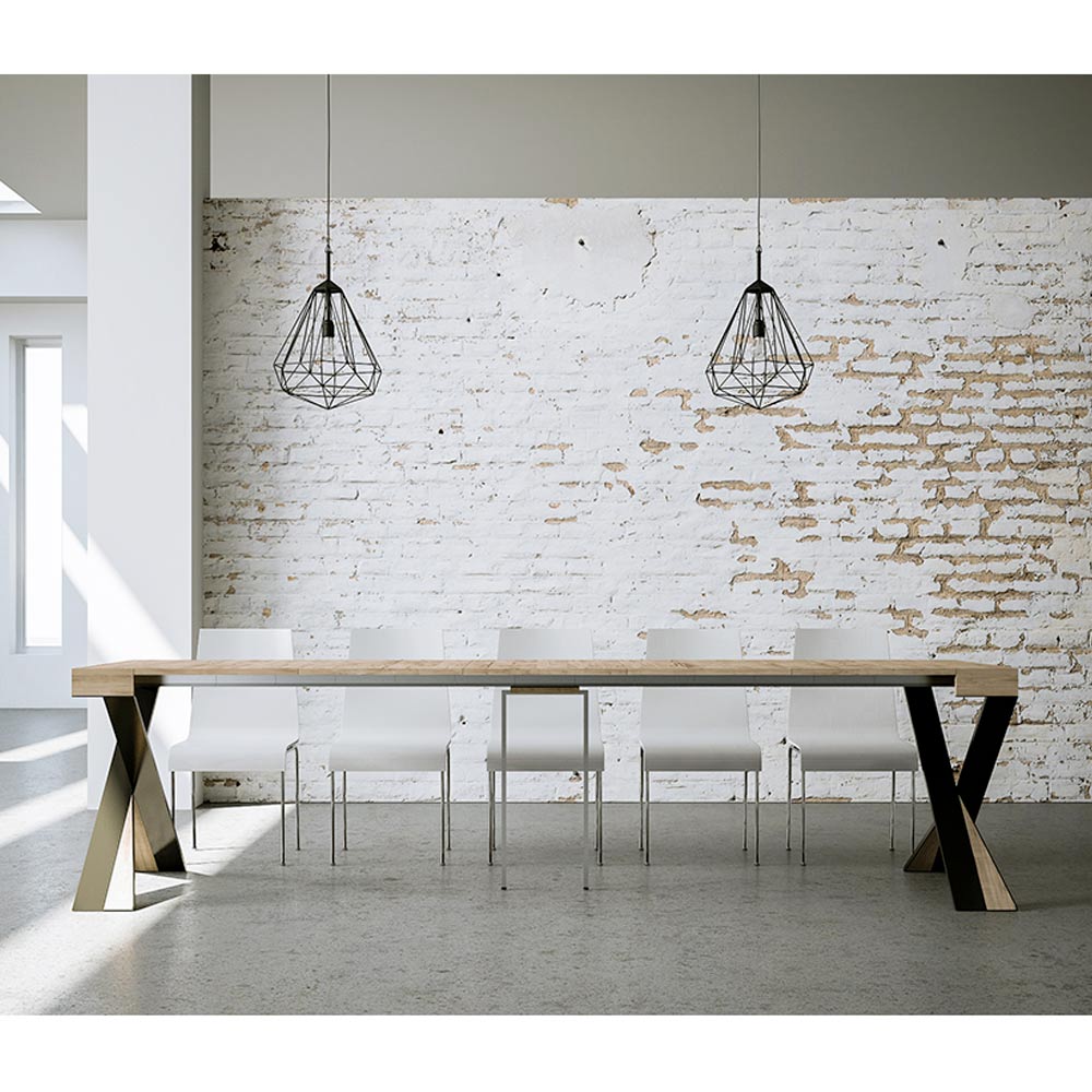 Dette udtrækkelige konsolbord kombinerer elegance og funktionalitet i et iøjnefaldende design. Det har en moderne silhuet med en X base, der ikke kun giver solid støtte, men også tilføjer et strejf af sofistikeret originalitet. Toppen i møbleret træè en hyldest til kvaliteten af Made in Italy, der er værdsat for sin holdbarhed og evne til at modstå tidens gang.
