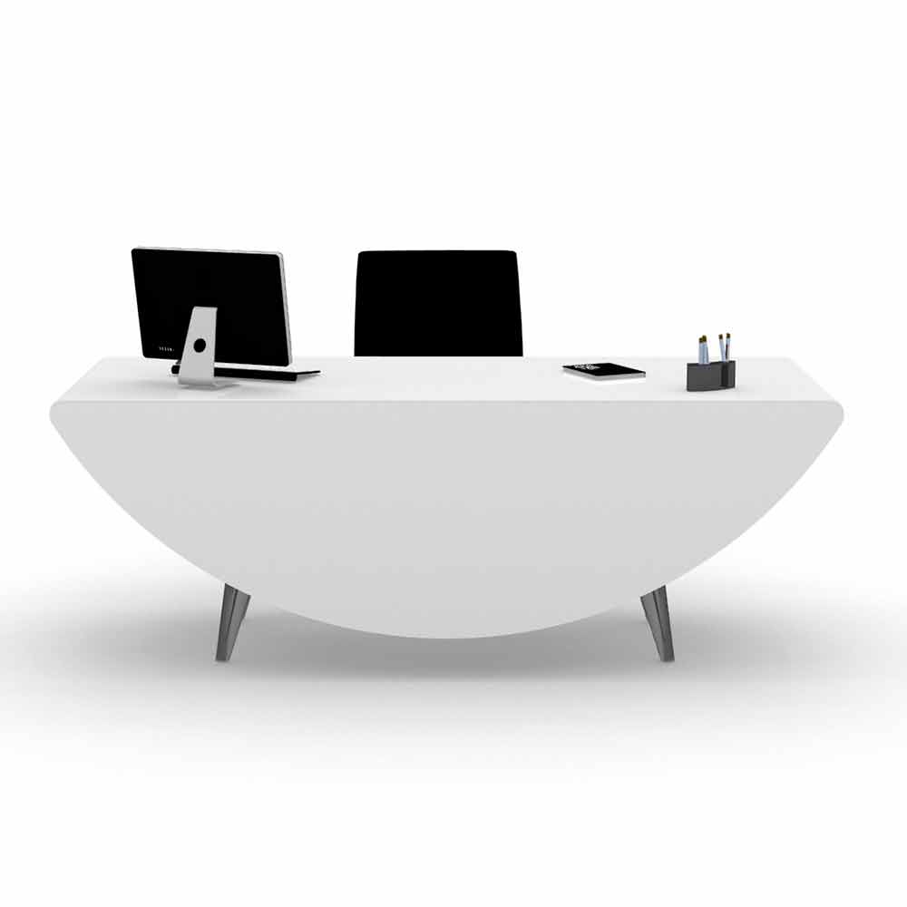 Milis er et fantastisk kontorbord, som med sin halvmåneform minder meget om et vækkeur fra 1950'erne.