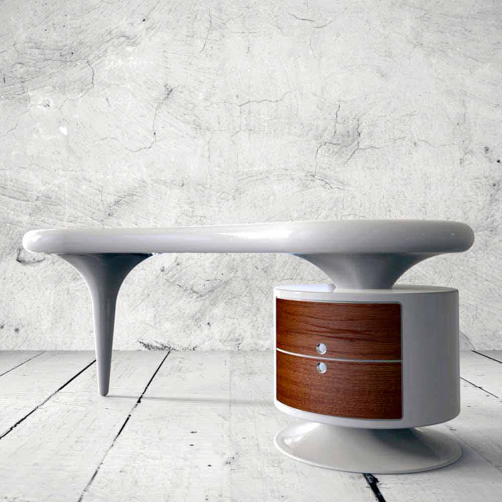 Den materielle kontrast givet af moderniteten af Solid Surface; med træets "varme" og de afrundede former giver de et retro-touch til Bean-skrivebordet, der tilpasser sig enhver form for miljø.