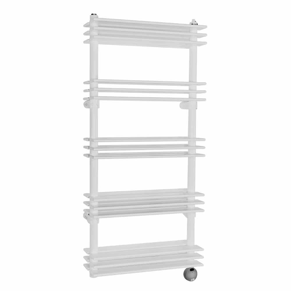 elektriske radiator har et multifunktionelt design bestående af lodrette rør og vandrette plader, der kan udføre funktionen af ægte hylder.