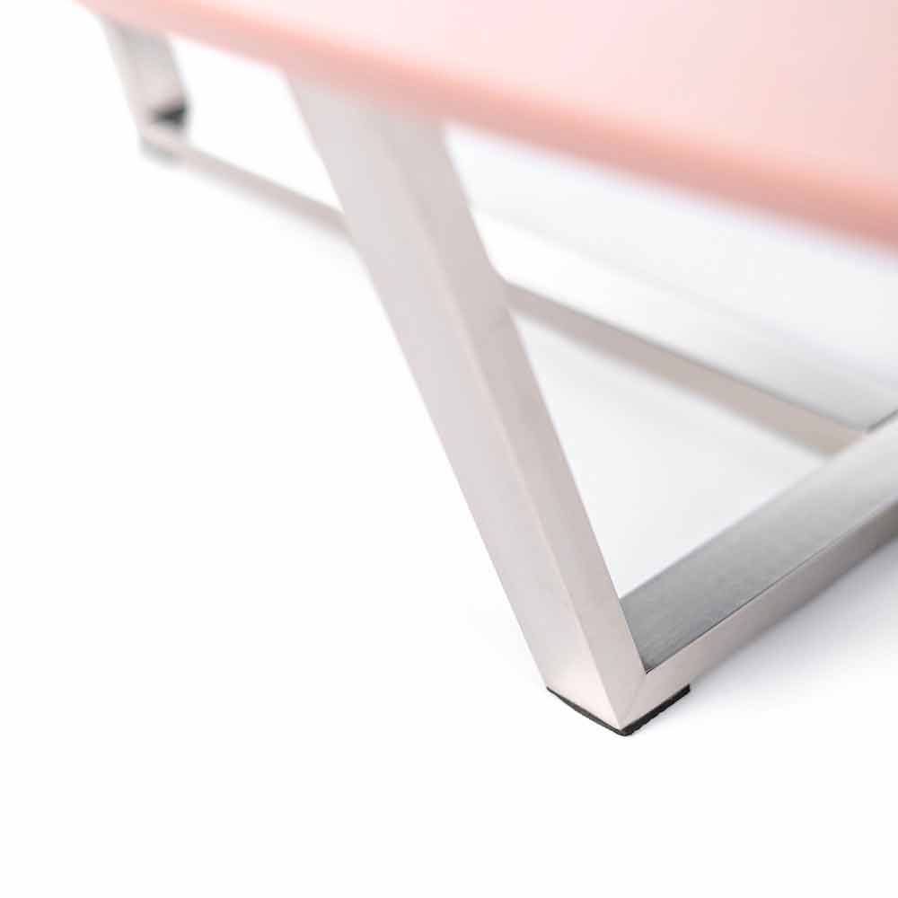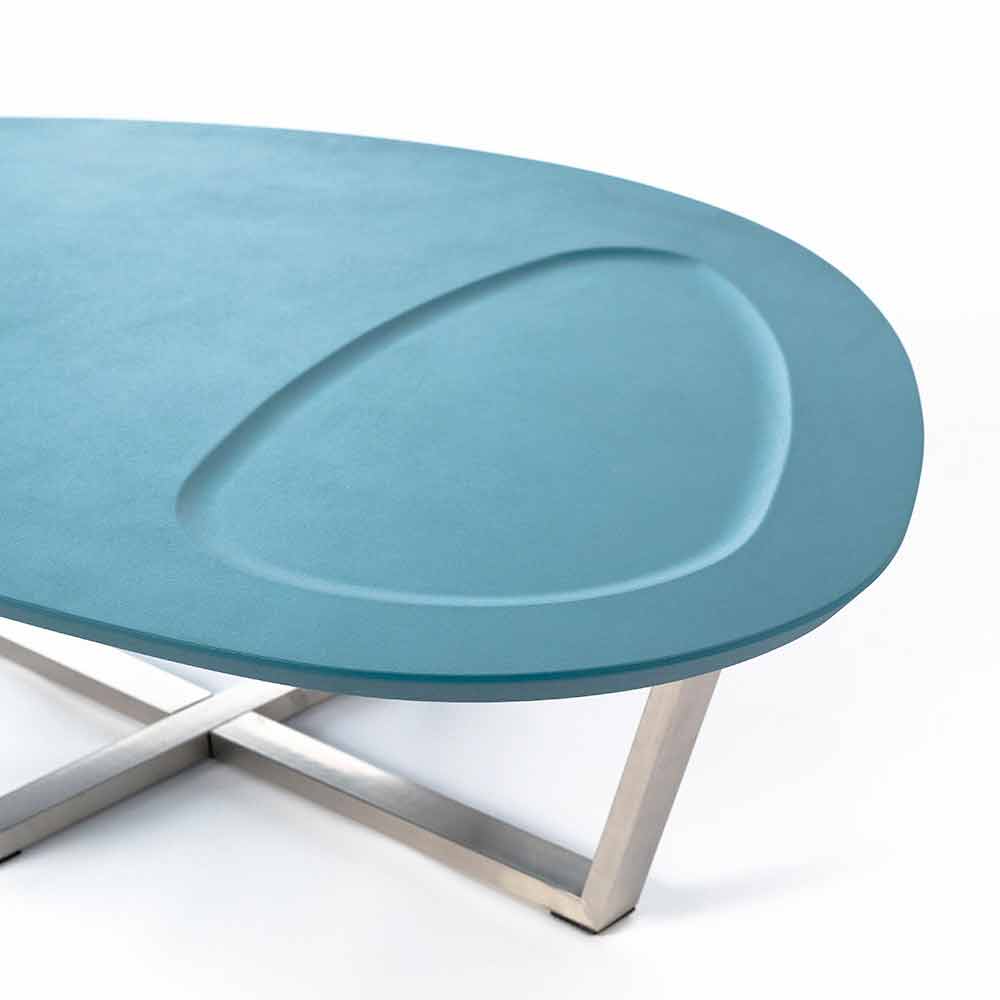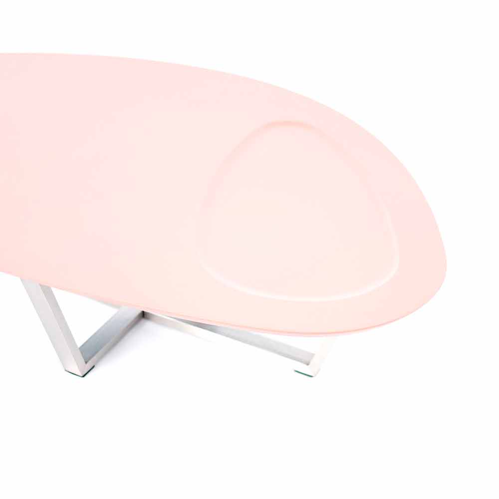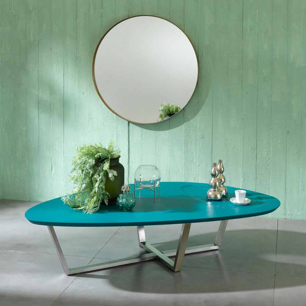 Donatella er et formet sofabord lavet med en MDF-top og en forkromet metalbase.