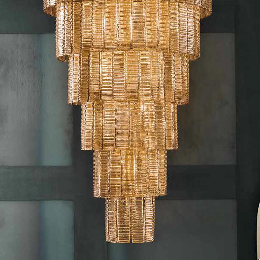 36 lys lysekrone i håndlavet glas med geometrisk dekoration, italiensk luksus.