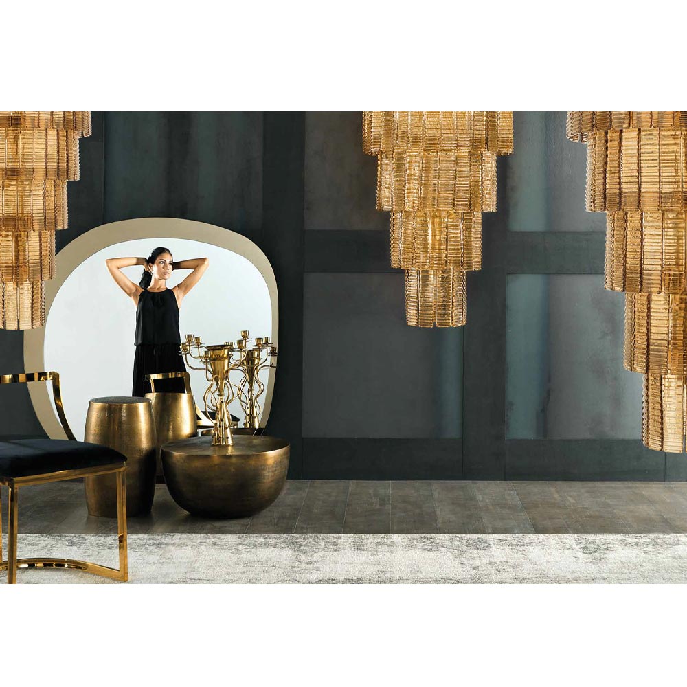 Metalstrukturen fås i satin guld og satin poleret finish. Det ekstremt elegante produkt præsenterer en ubestridt stil, hvis grænseløse charme bliver hovedpersonen i destinationsrummet.