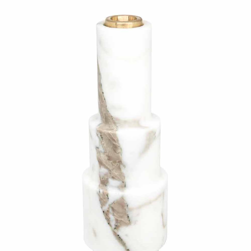 Høj moderne lysestage i hvid Carrara marmor og messing Made in Italy.