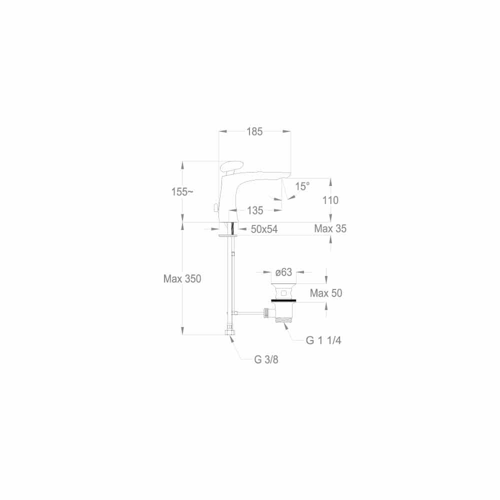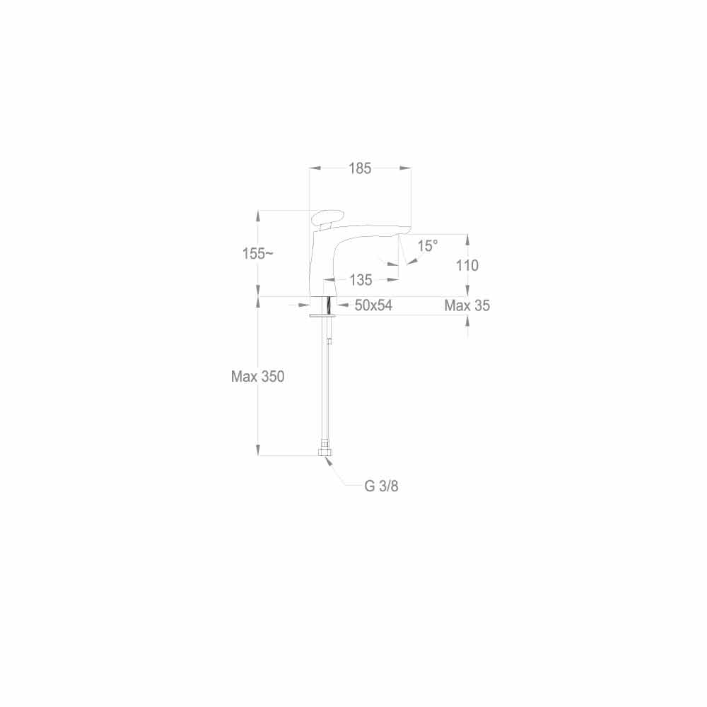 Bordvaskarmatur med ultramoderne og kreativt design 155 mm højt og med en 135 mm centerafstand.