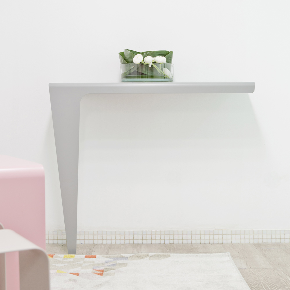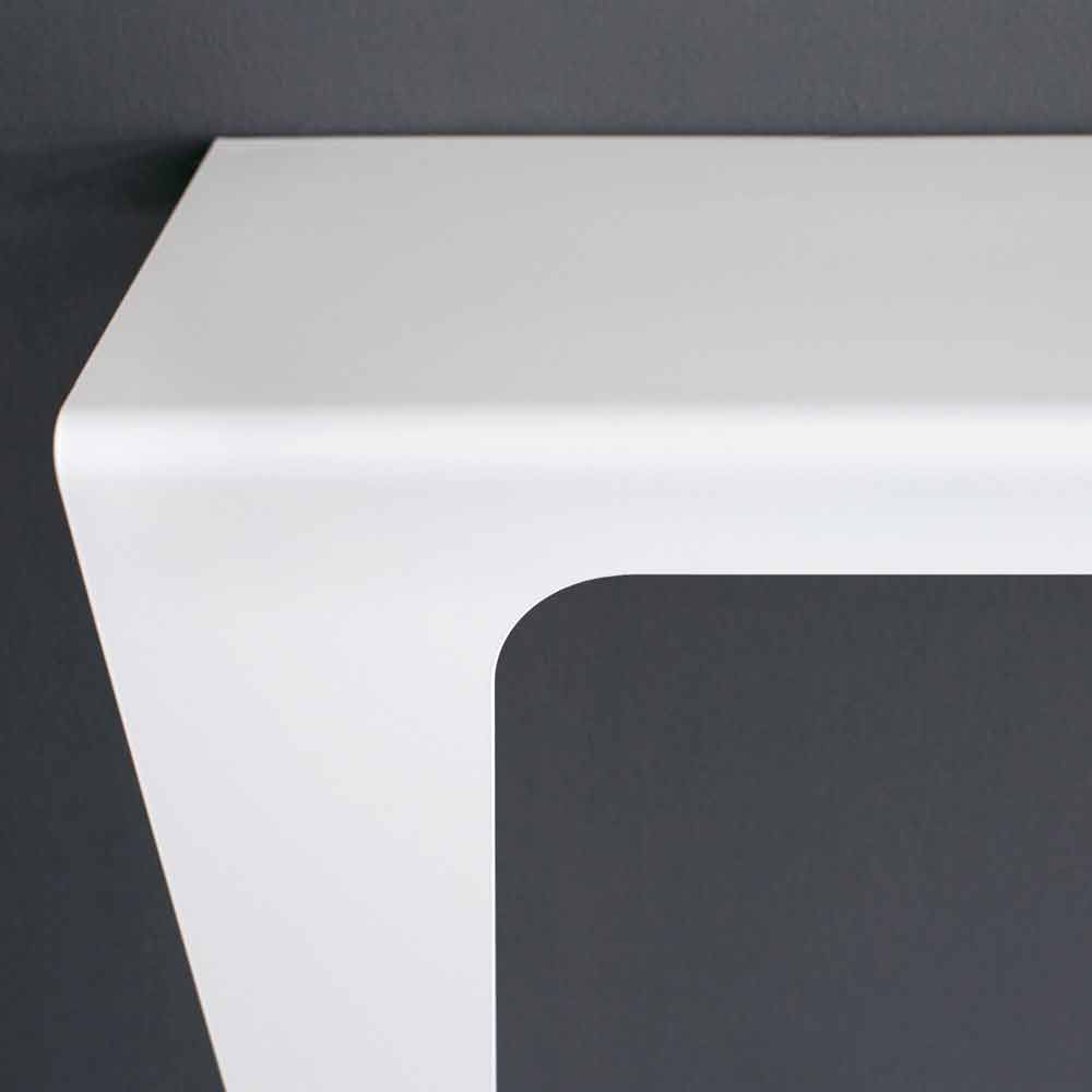 De afbalancerede, reducerede, forenklede linjer giver liv til en stærk moderne scenografi, der gør vægkonsollen unik og kan tilpasses ethvert miljø, da den er udstyret med stor alsidighed.