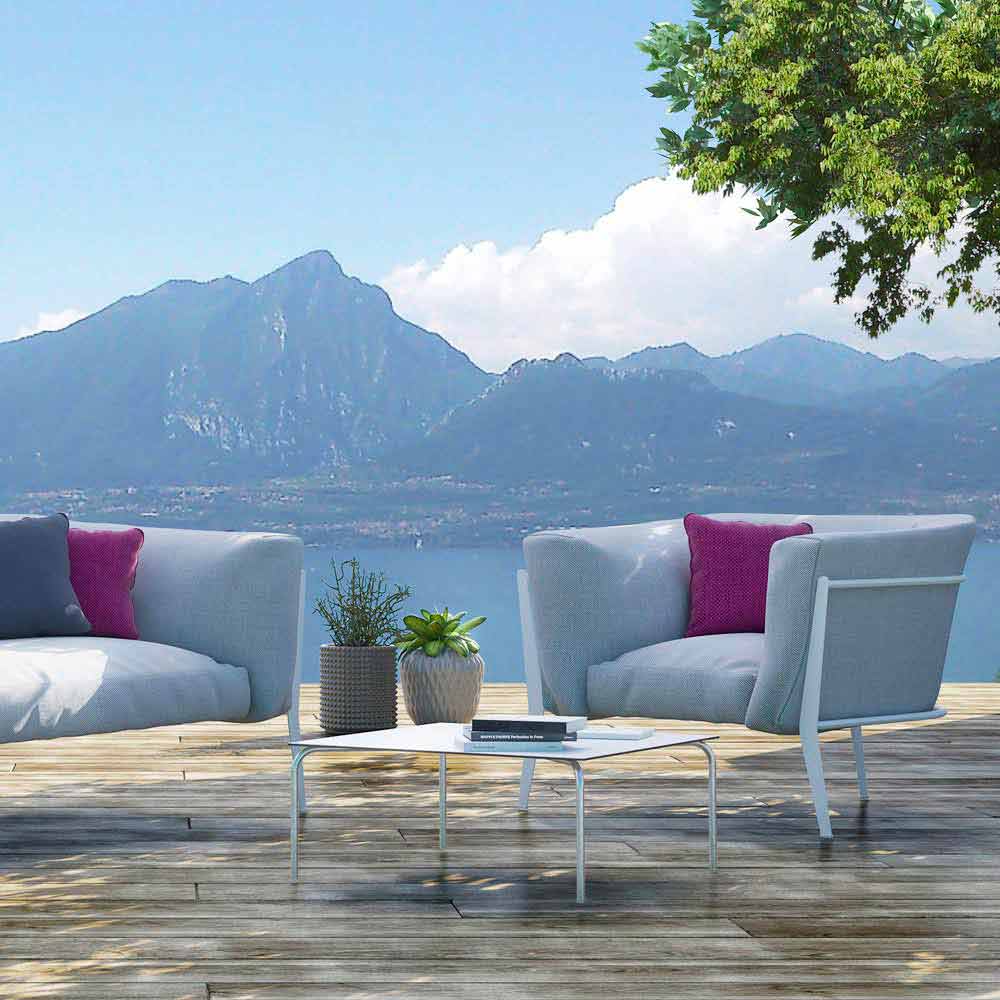 Moderne udendørs lænestol, aluminiumsstruktur og aftageligt stof, lavet i Italien design.