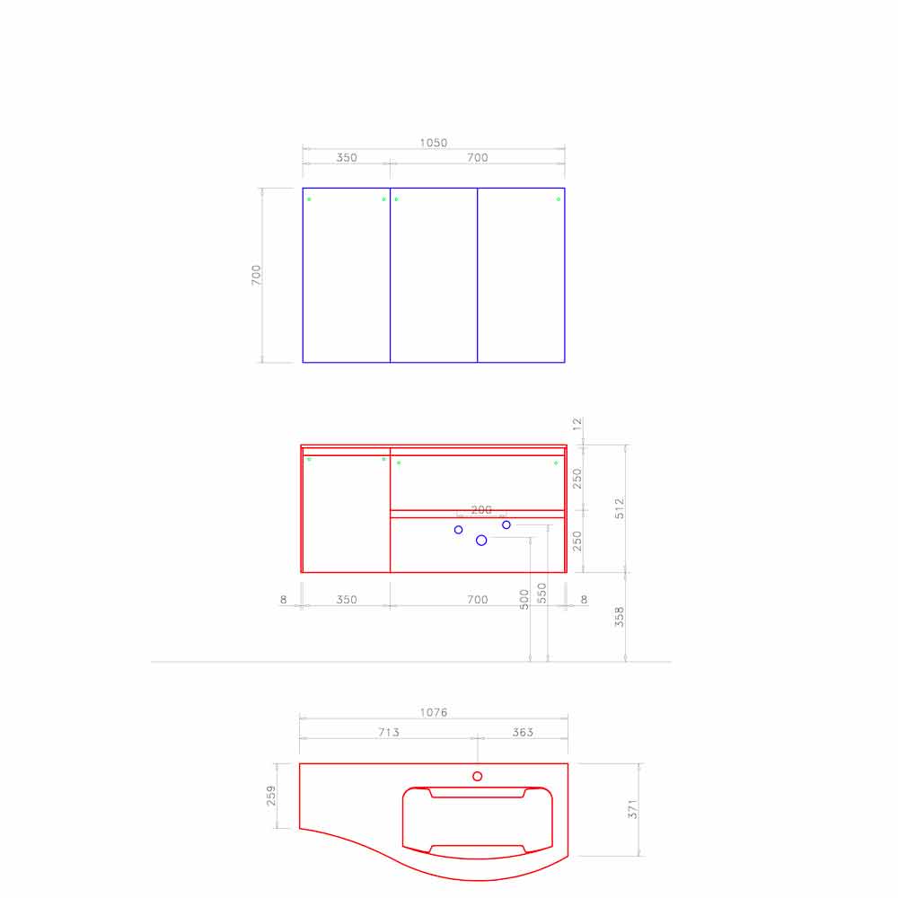 Denne kompositions egenart er givet af silhuetten af den indbyggede håndvask, der er kendetegnet ved to laterale sider, der forsigtigt falder ned mod bassinet.