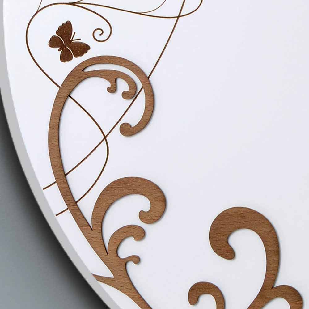 Moderne design rundt vægur, i dekoreret træ, lavet i Italien.