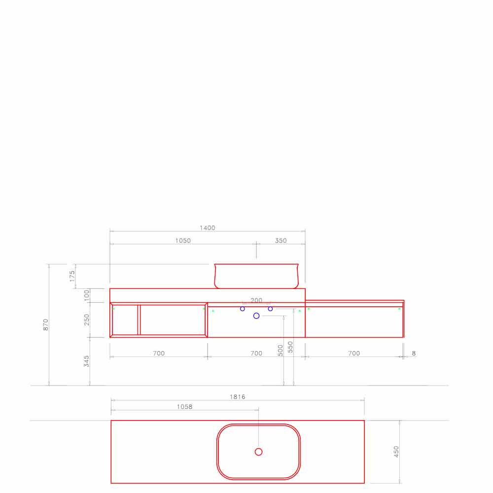 - håndvask til bordplade L.141 X P.45 X H. 8 cm