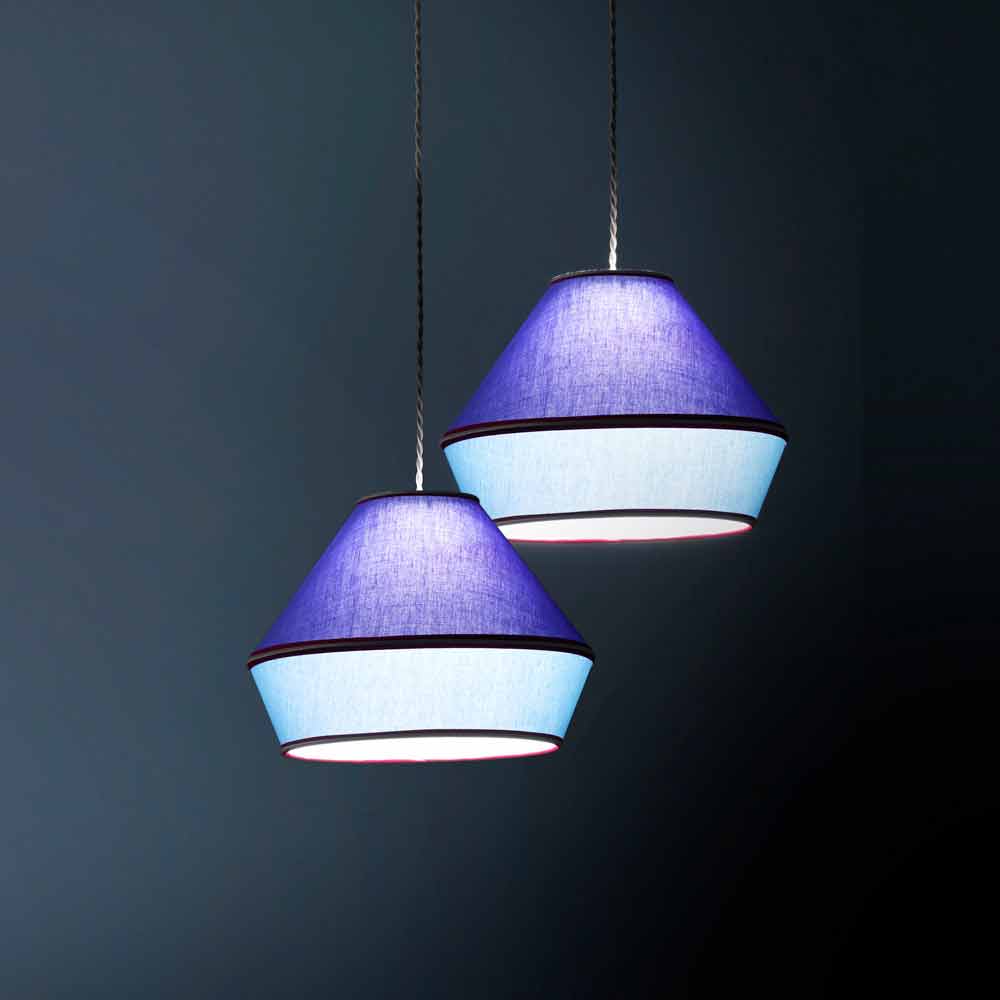 Moderne pendel med blå og lyseblå lampeskærm i bomuld Fremstillet i Italien.