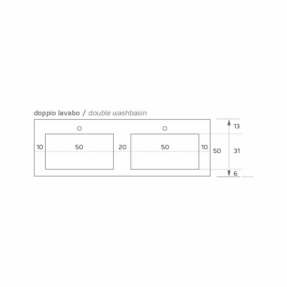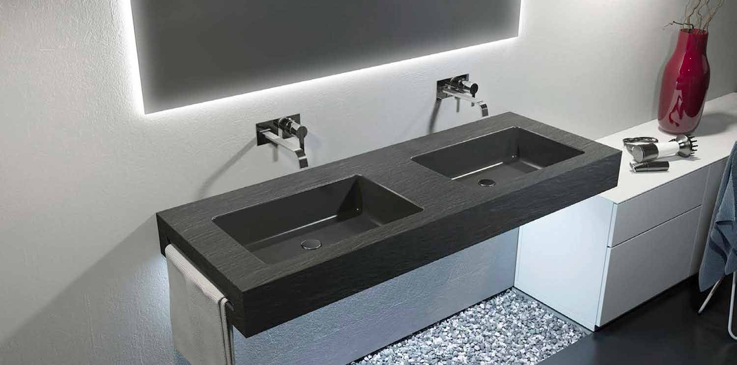 Rufina er et integreret system bestående af en materialetop, der huser to håndvaske; dets særlige forhold er, at det kan installeres på alle typer baser eller være i den suspenderede version.