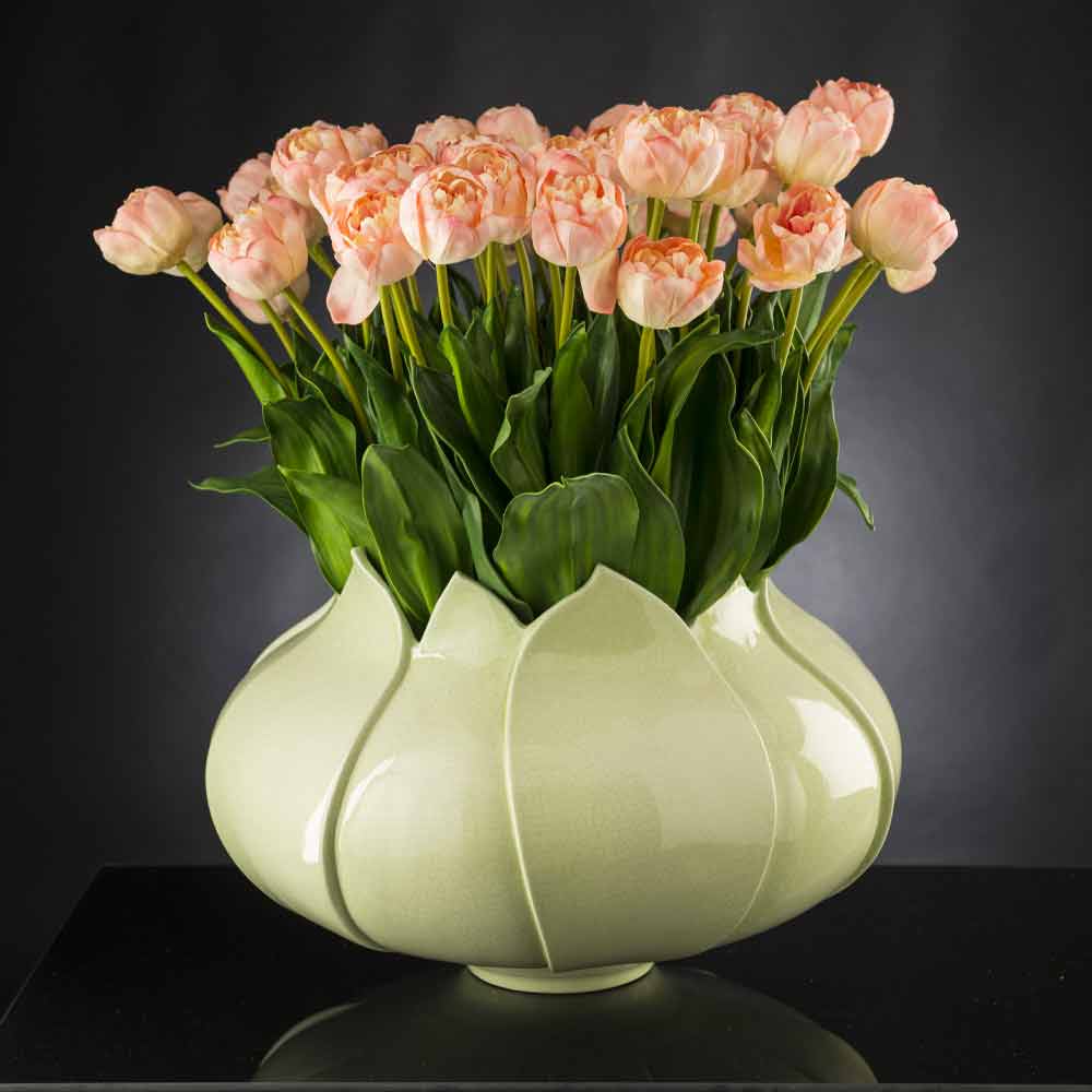 farvet keramik håndlavet i Italien. Et særligt elegant design, der minder om formen på en tulipan, der tilbyder et