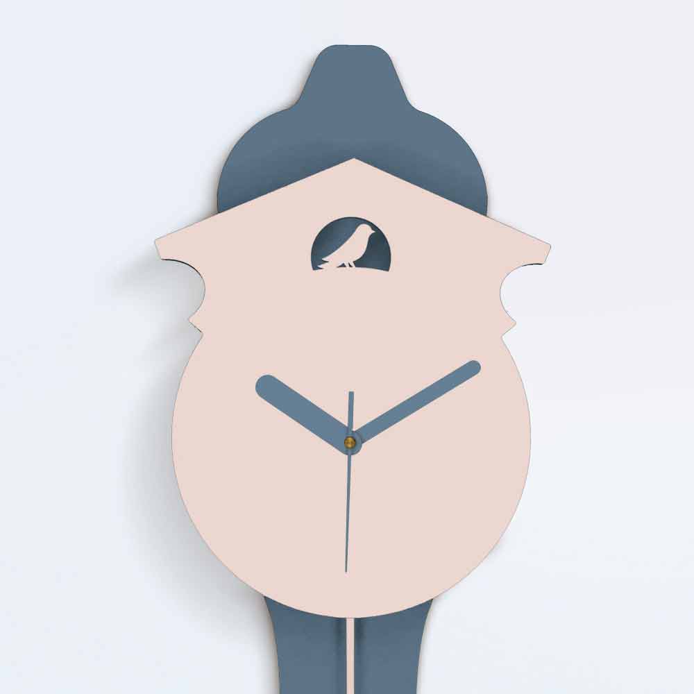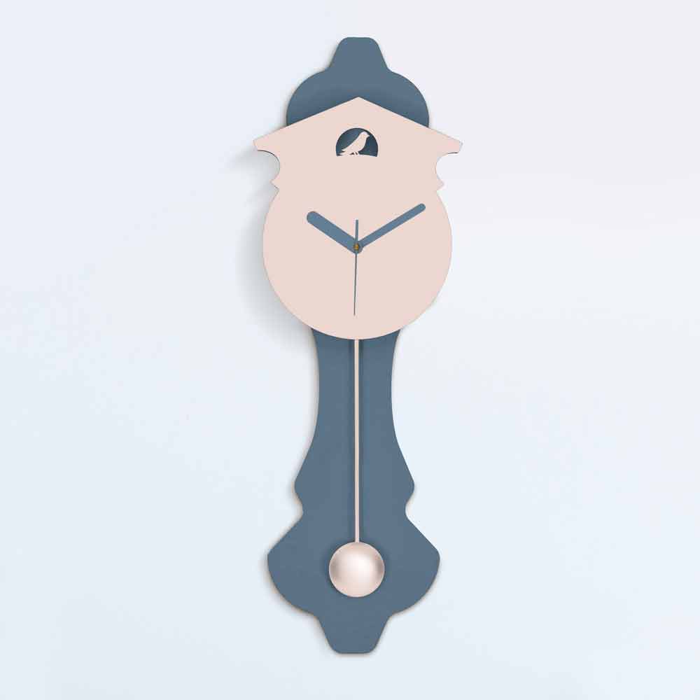 Pendulurvæggrå og lyserød, moderne design i laserskåret træ, lavet i Italien.