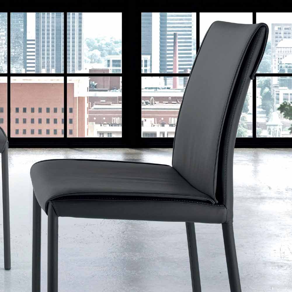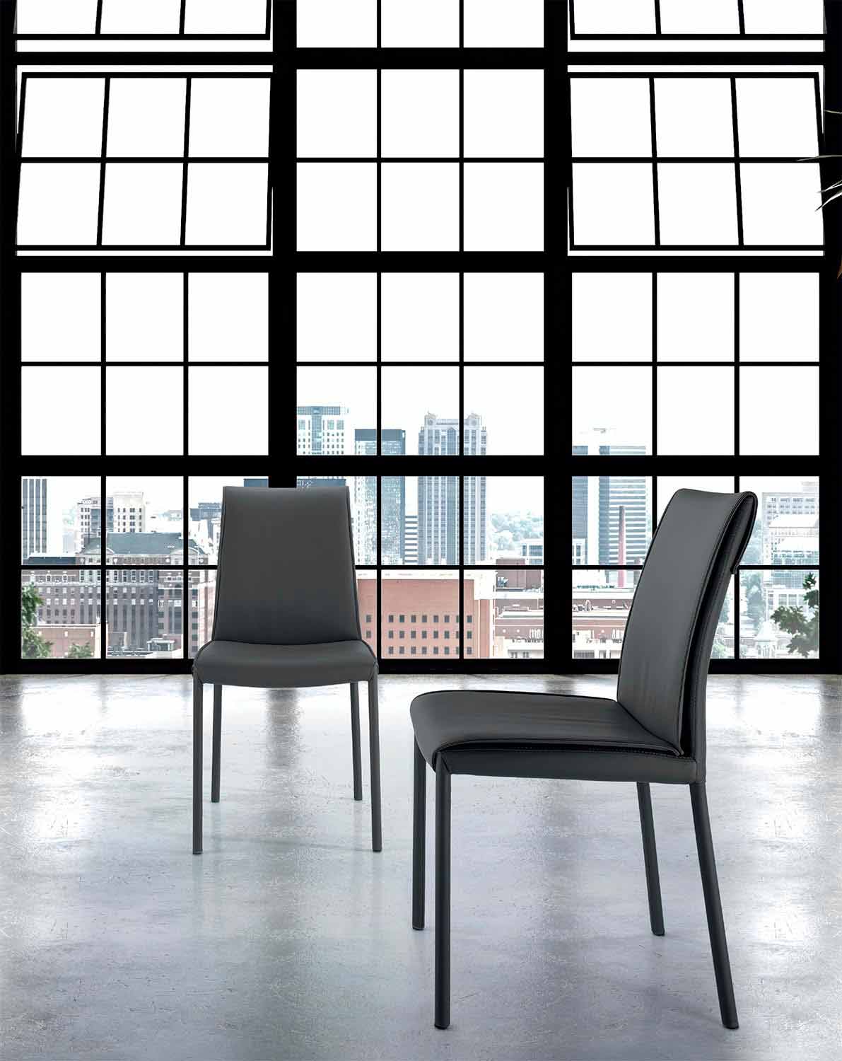 Polstret spisestuestol helt dækket af stof, læder, fløjl eller øko-læder; håndlavet i Italien.