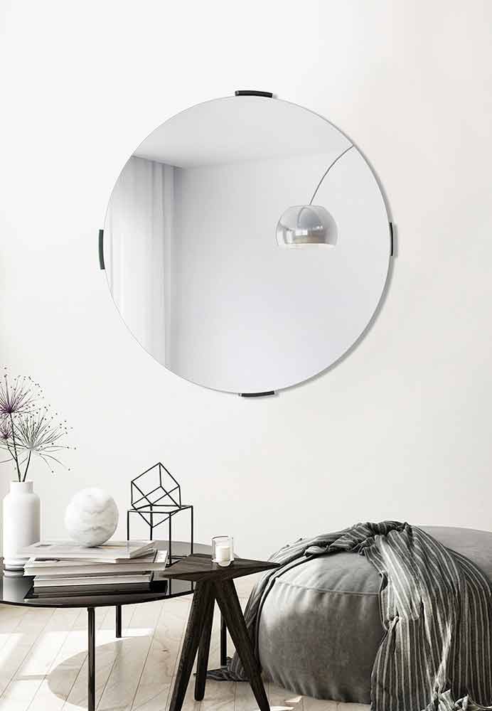 Moderne og rund cantilever væg spejl af minimal design lavet i Italien.