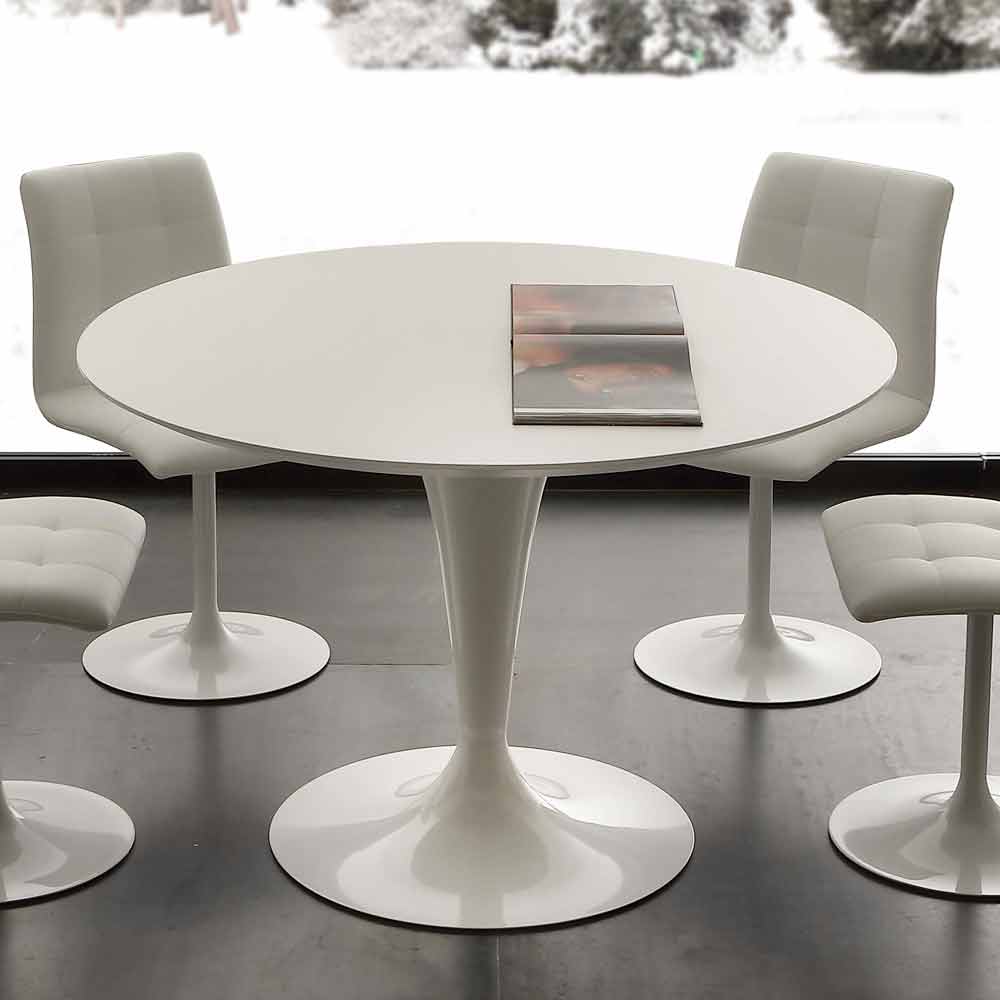Meget praktisk og alsidig, Topeka er lavet med en hvidmalet stålbase og en 30 mm tyk H77 cm top og udvidet kant, der fås i forskellige diameterstørrelser, i to forskellige materialer og tre forskellige nuancer af hvid.