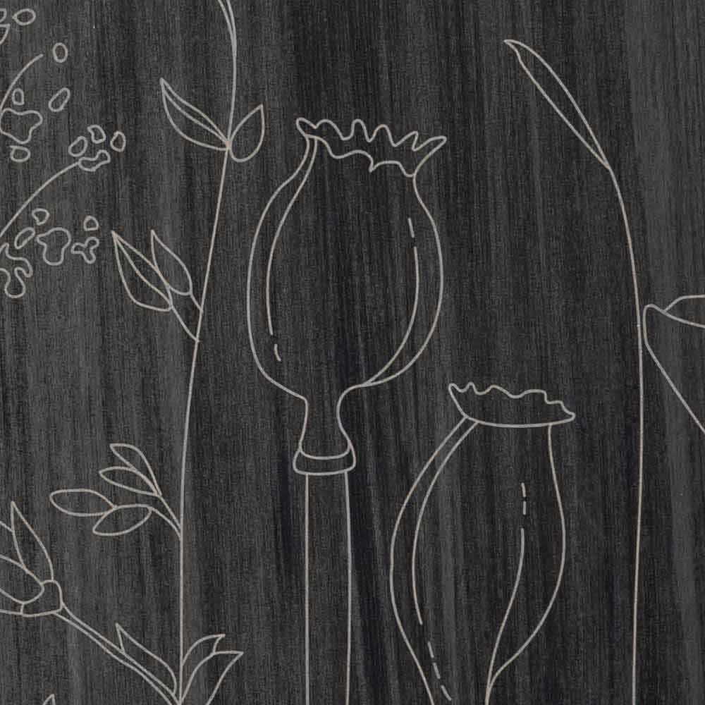 Dette vægur er lavet af tavletræ med lasergraverede blomsterdekorationer.