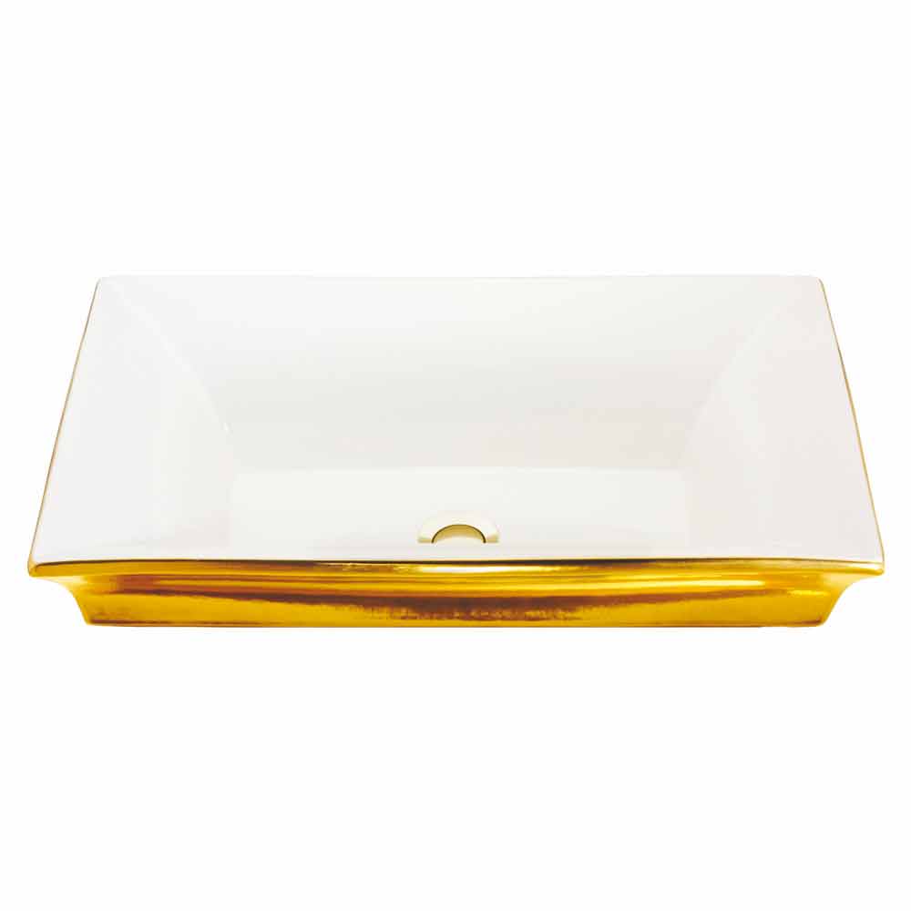Semirecessed vask håndlavet i Italien i brand ler med skinnende hvide indvendige og raffineret med 24k guld på ydersiden.