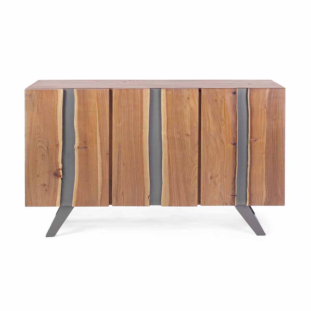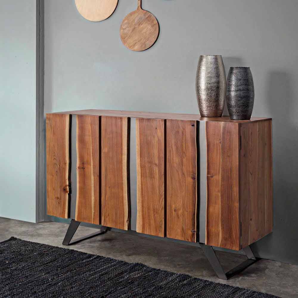 Moderne skænk i akacietræ med metalindsatser Homemotion - Sonia