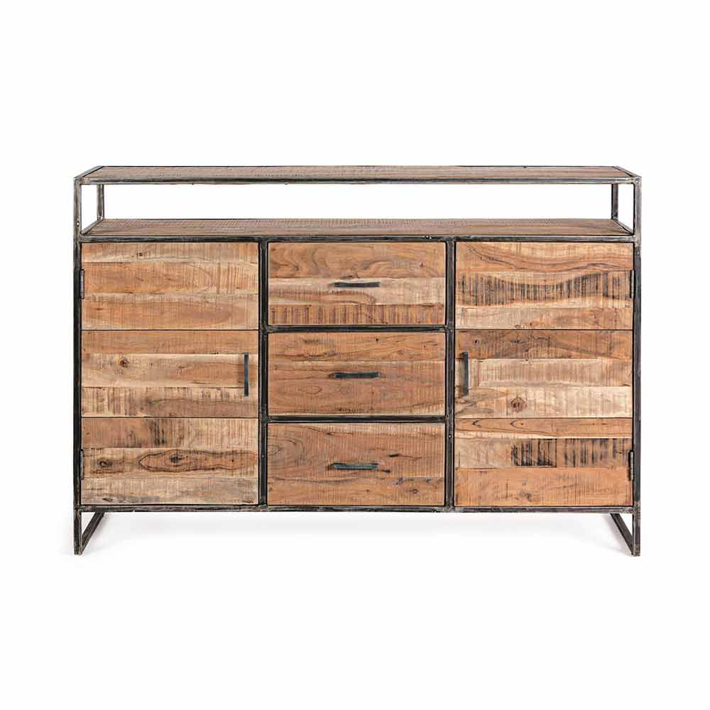 Moderne skænk med struktur i Acacia træ og stål Homemotion - Posta