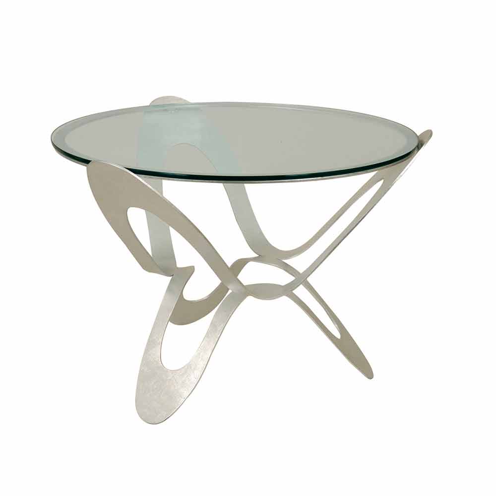 Lavt rundt sofabord produceret i Italien håndlavet i glas og blad af guld eller sølv.