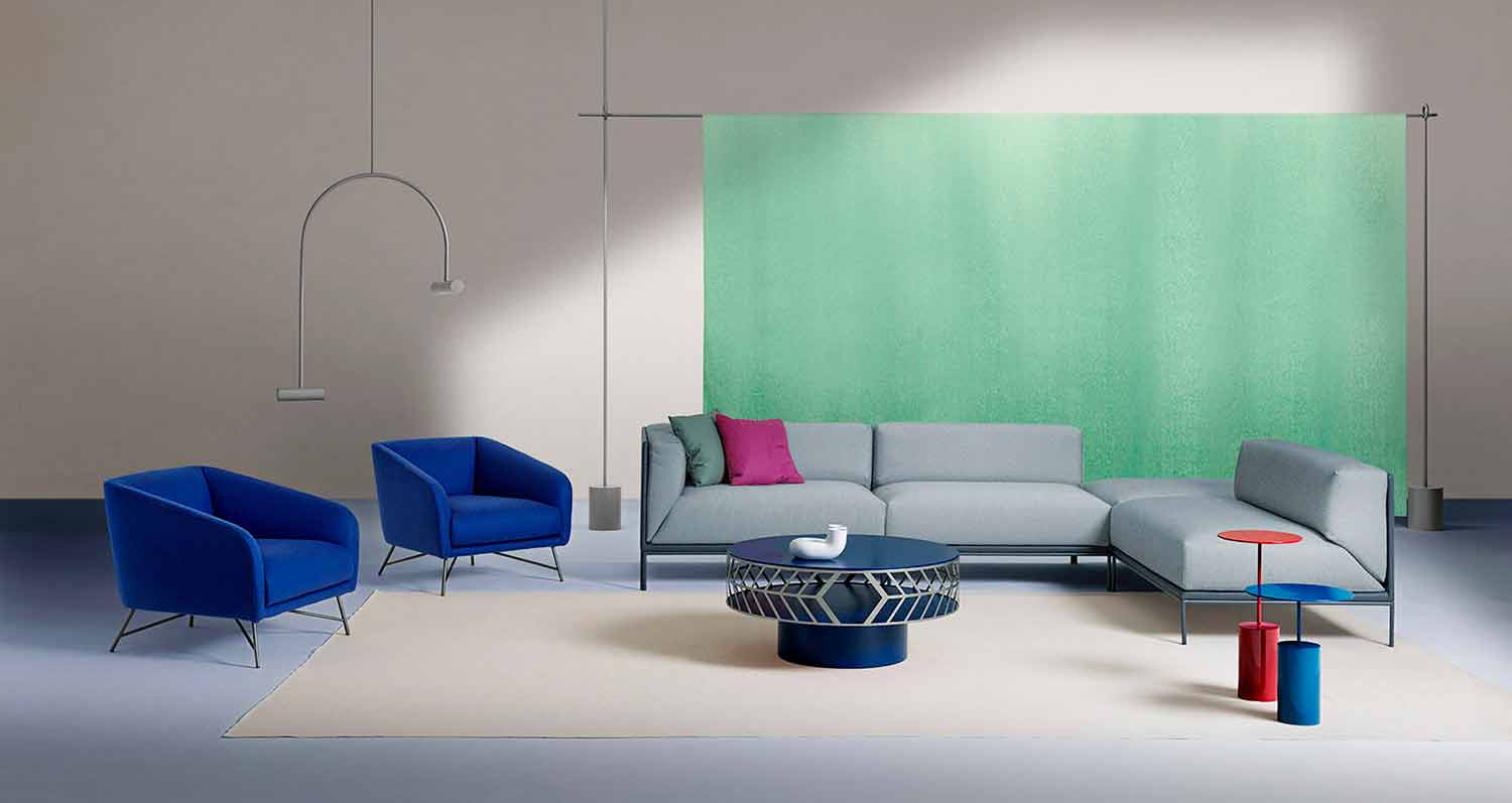 Stue sofabord i farvet MDF med stålring med et moderne og originalt design lavet i Italien.