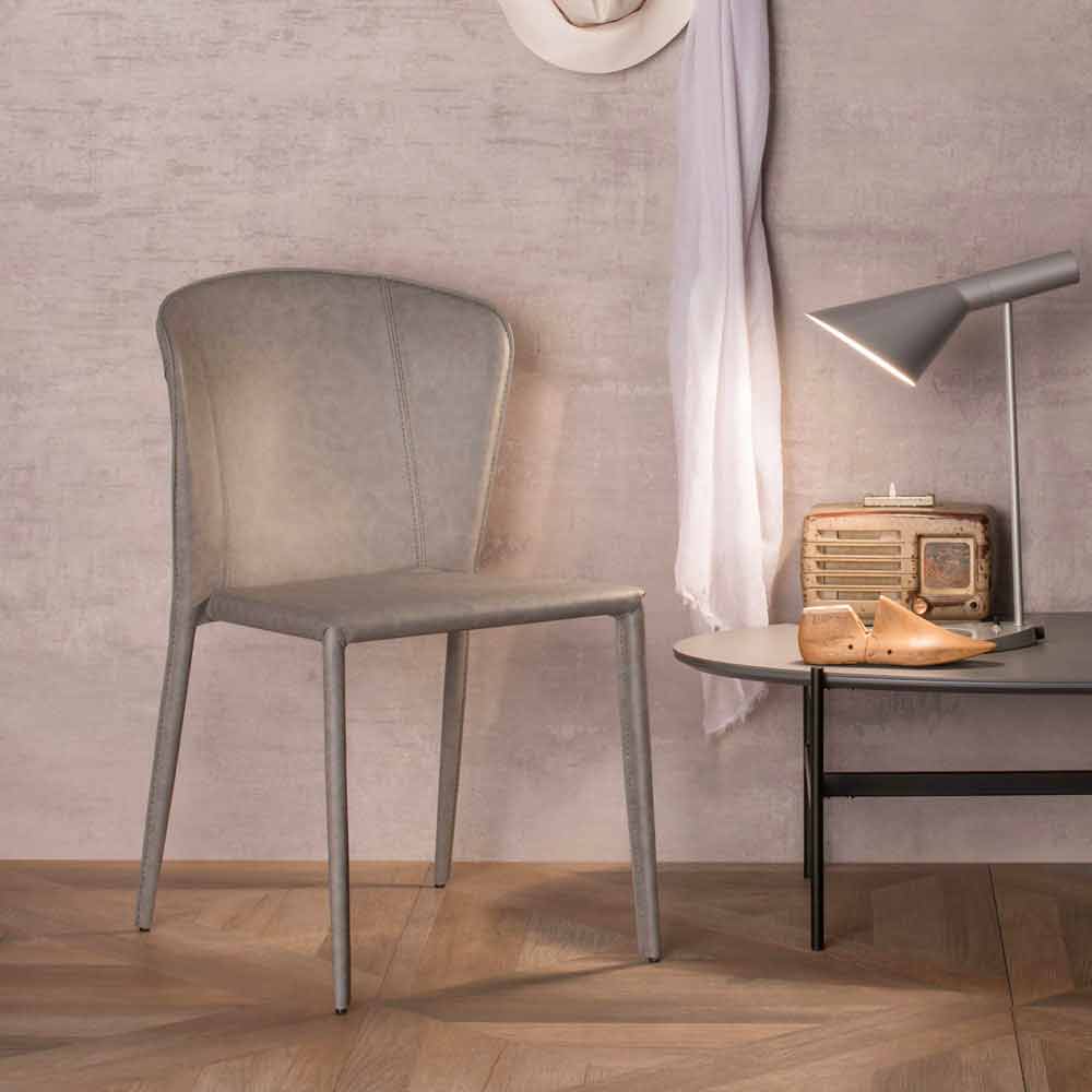 Den har en metalstruktur, der er helt dækket af imiteret læder i et udvalg af farver: due grå, grå, mørk grå, læder og hvid.